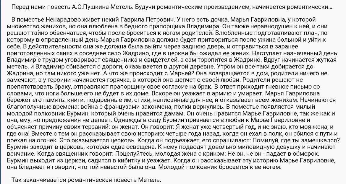 Помогите составить монолог Марьи Гавриловны в церкви по Пушкину "метель"