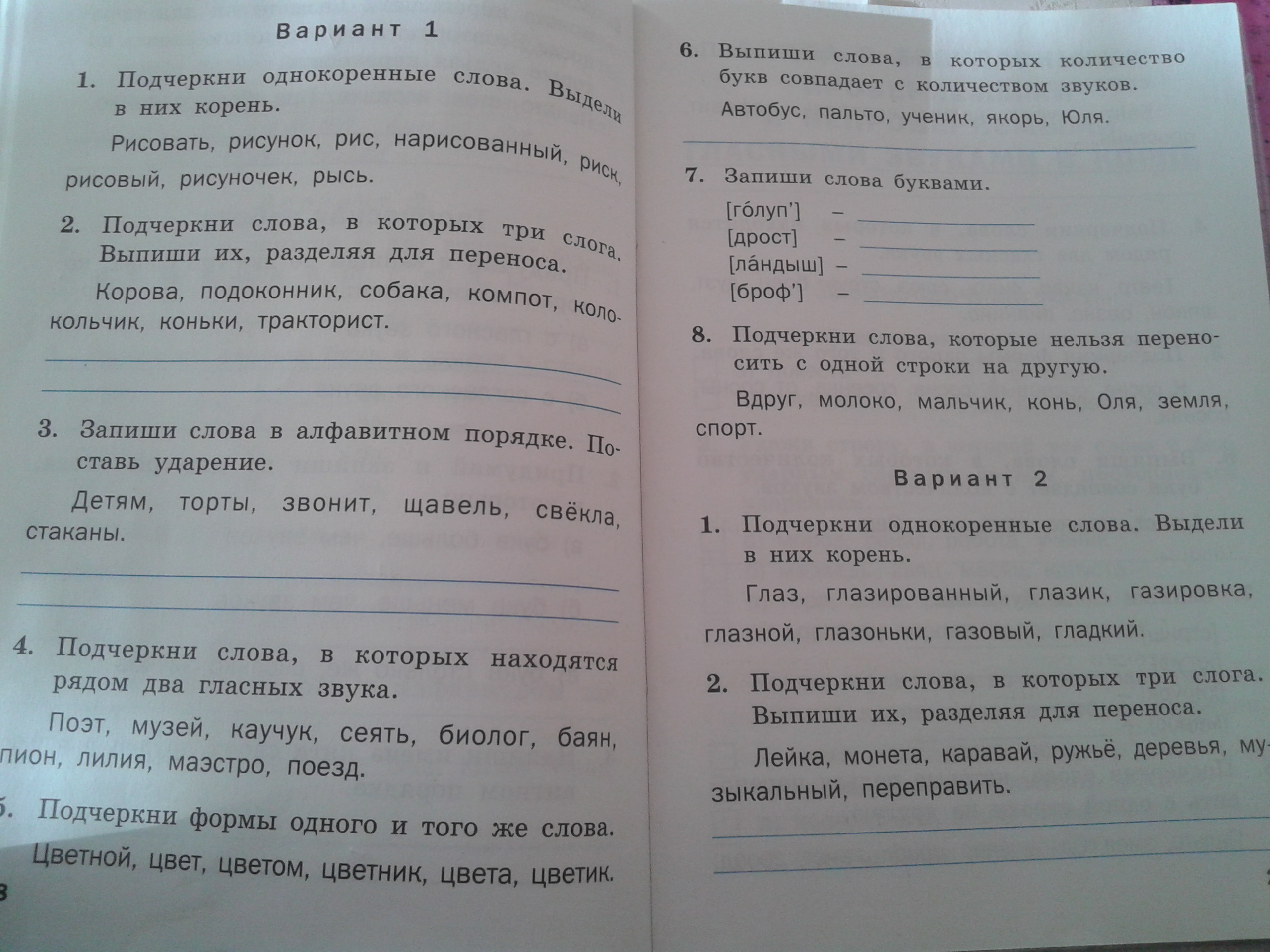 1. рисовать,рисунок,нарисованный, рисуночек корень рис.2. ко-ро-ва , со-ба-ка , трак-то-рист