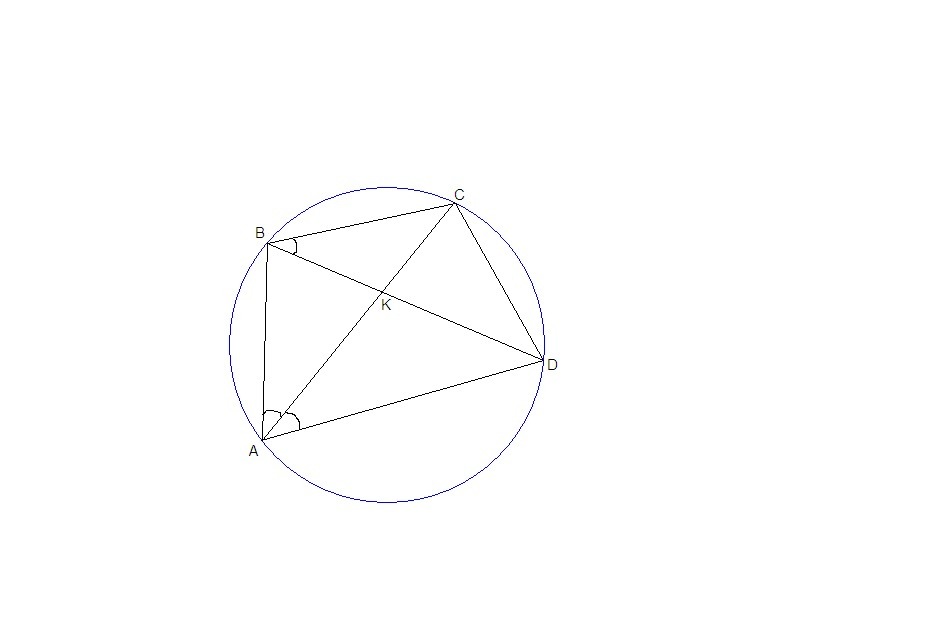 В выпуклом четырехугольнике ABCD диагональ AC является биссектрисой угла DAB и пересекает диагональ BD в точке K.Найдите BC, если известно,что AK=9,KC=3 и около четырёхугольника ABCD можно описать окружность