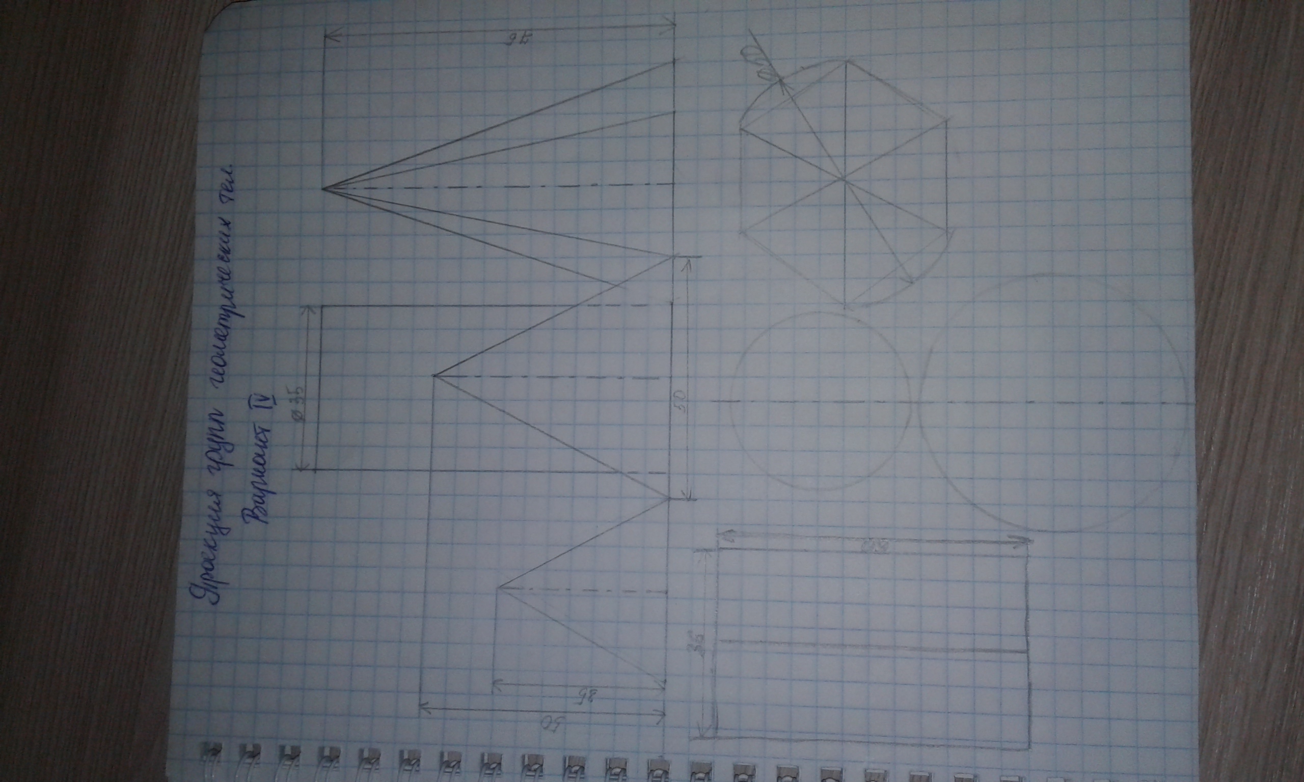 Помогите ПОЖАЛУЙСТА. Черчение 9 класс. Надо начертить проекцию групп геометрических тел вид с боку (начерчен вид спереди и сверху)