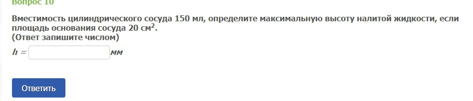 V=S×h , h=V÷S 0,0002÷0,002=0,1 метр = 100 мм