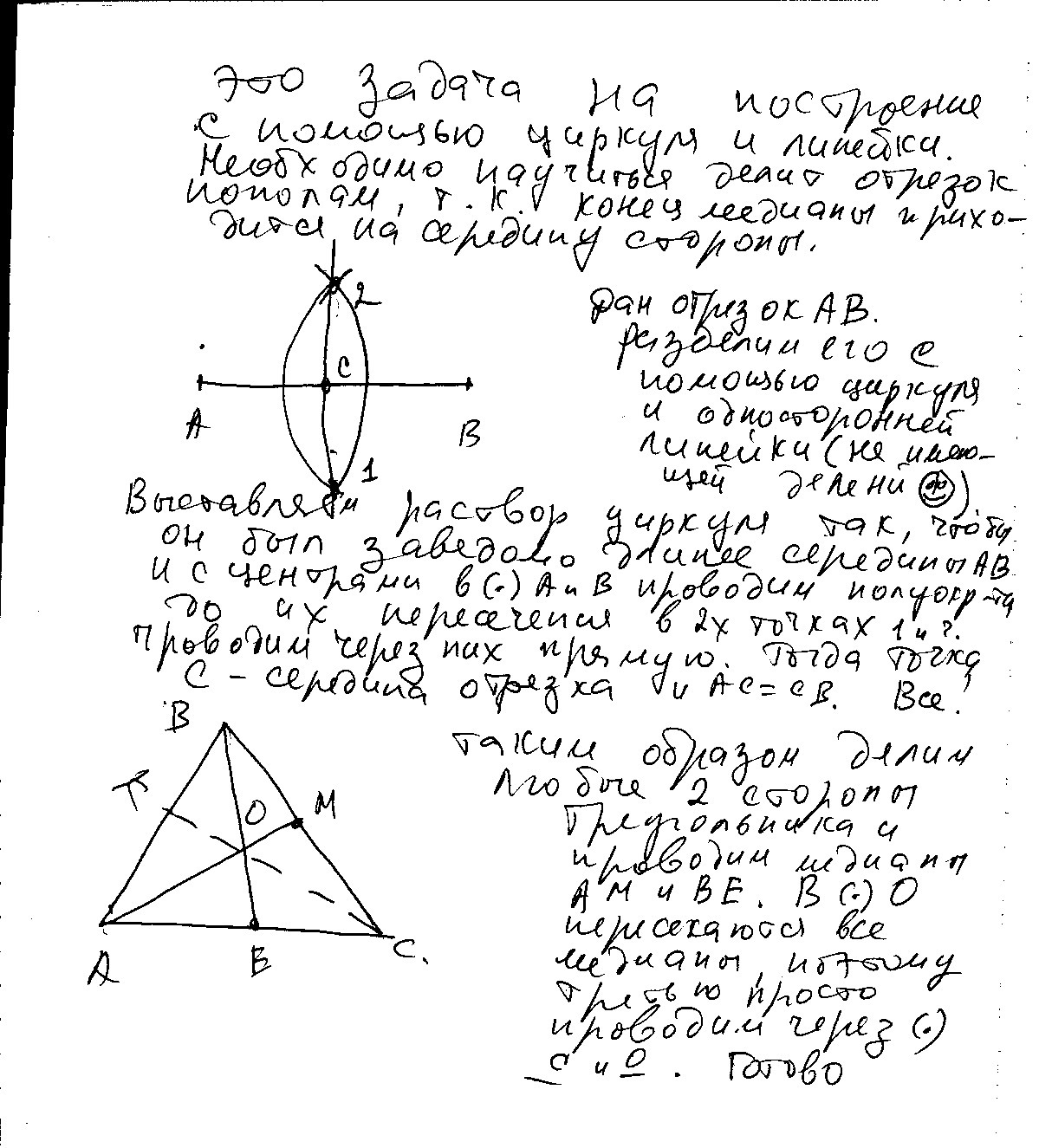 Дан треугольник. Постройте его медианы. Ребят плиз срочно надо