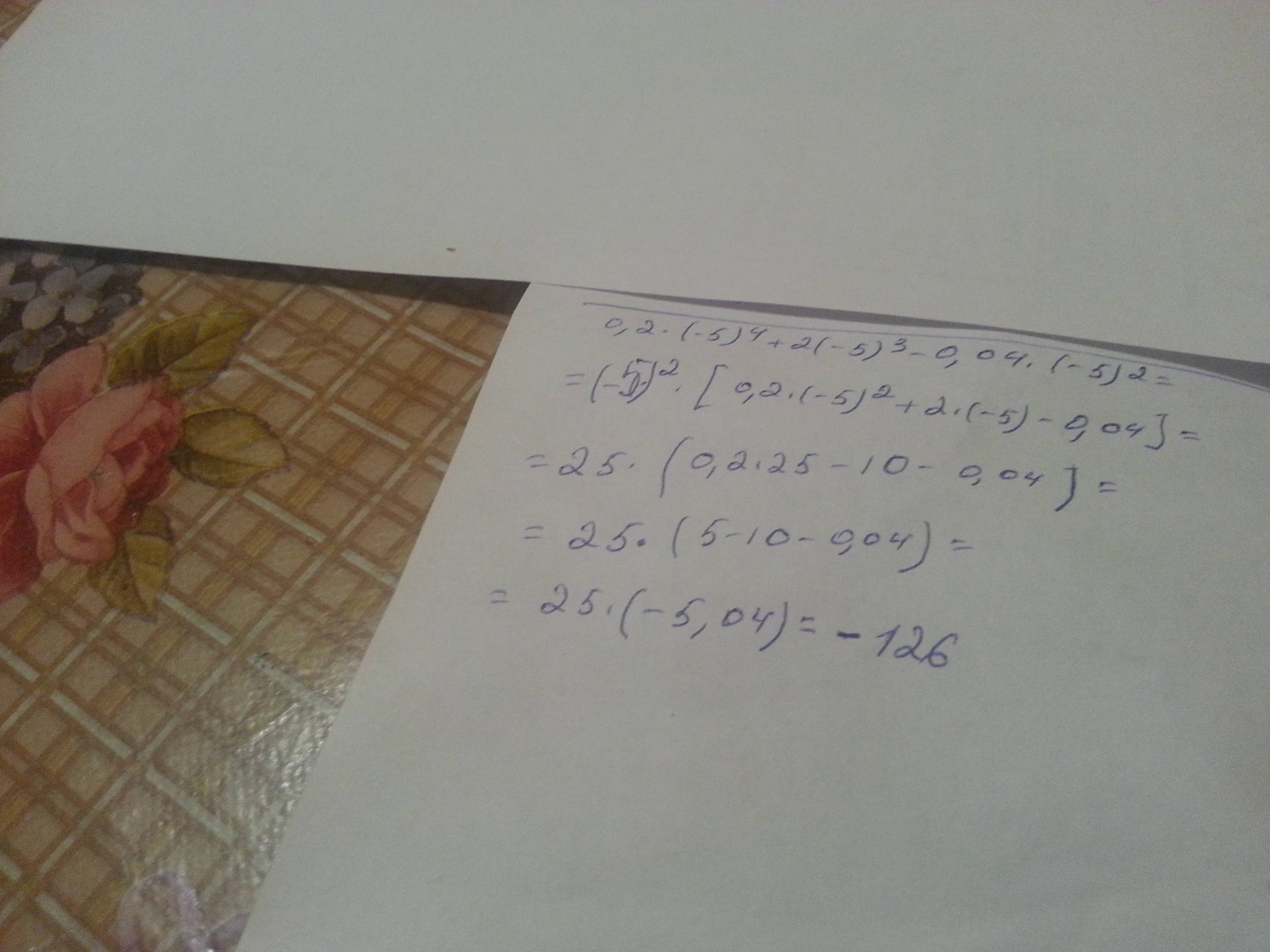 Найдите значение выражения : 0,2⋅(− 5)^4+ 2⋅(− 5)^3– 0,04⋅(− 5)^2