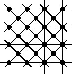 Рассмотрим волейбольную сетку со сторонами 10 и 20, разбитую на 10times 20 квадратных ячеек, где каждая ячейка разбита на четыре треугольных ячейки диагоналями: вершины ячейки соединены верёвочками с центром ячейки. Узлами сетки являются вершины и центры ячеек, см. рисунок. Какое наибольшее число верёвочек, соединяющих соседние узлы сетки, можно разрезать так, чтобы сетка не распалась на отдельные куски?