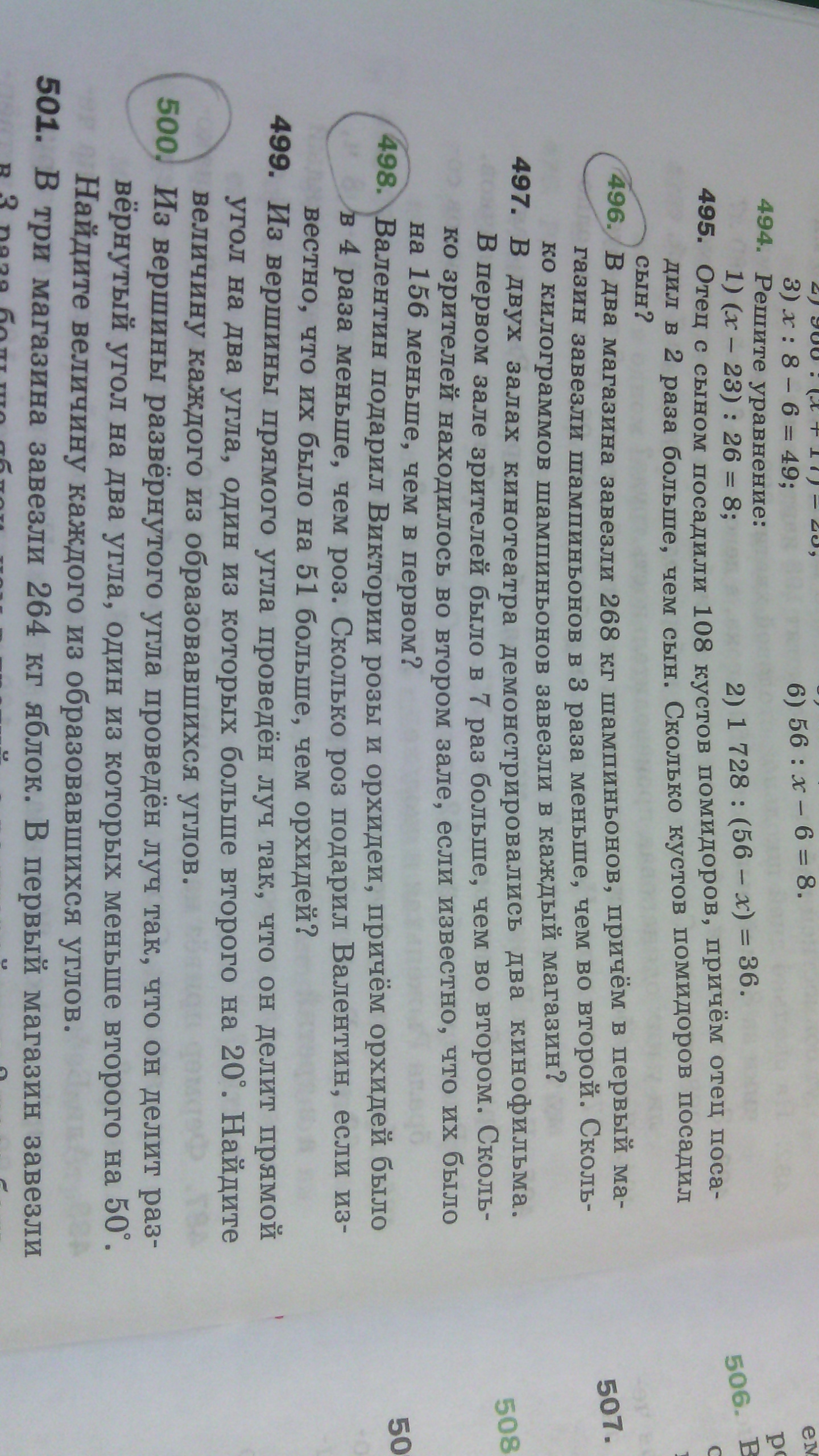 496) пусть в первый магазин завези х шампиньонов, а во второй 3х, развёрнутый угол равен180