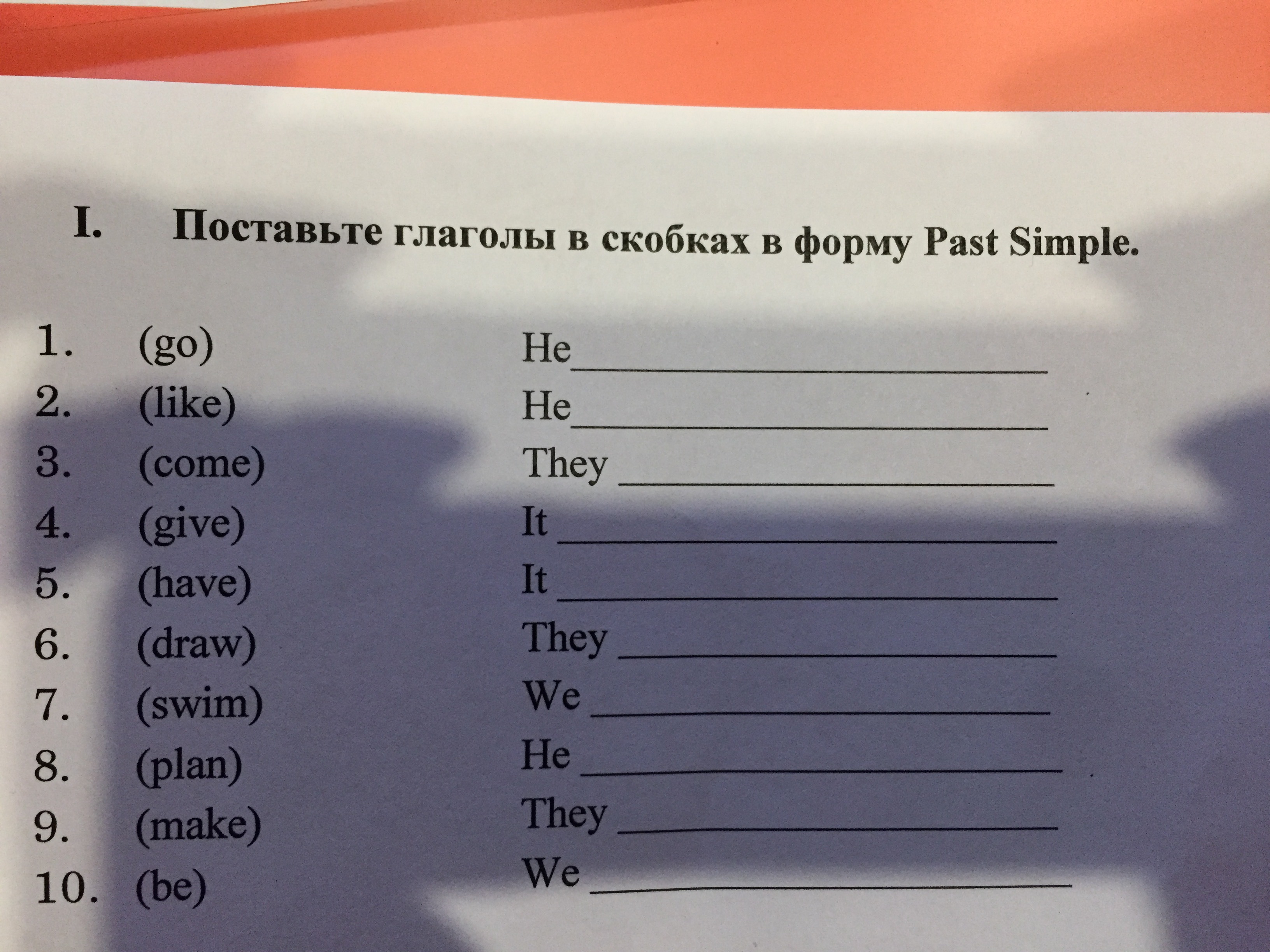 1. went, 2. liked, 3. came, 4. have, 5. has, 6.drew, 7. swam, 8. planned, 9. made, 10. were.