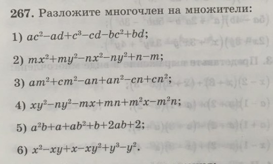 4) ху^2-пу^2-мх+мп+м^2х-м^2п= у^2(х-п)-м(х-п)+м^2(х-п)= (х-п)(у^2-м+м^2);
