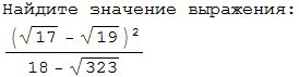 (√17-√19)²/(18-√323)=(17+19-2*√323)/(18-√323)=(36-2√323)/(18-√323)=2(18-√323)/(18-√323)=2