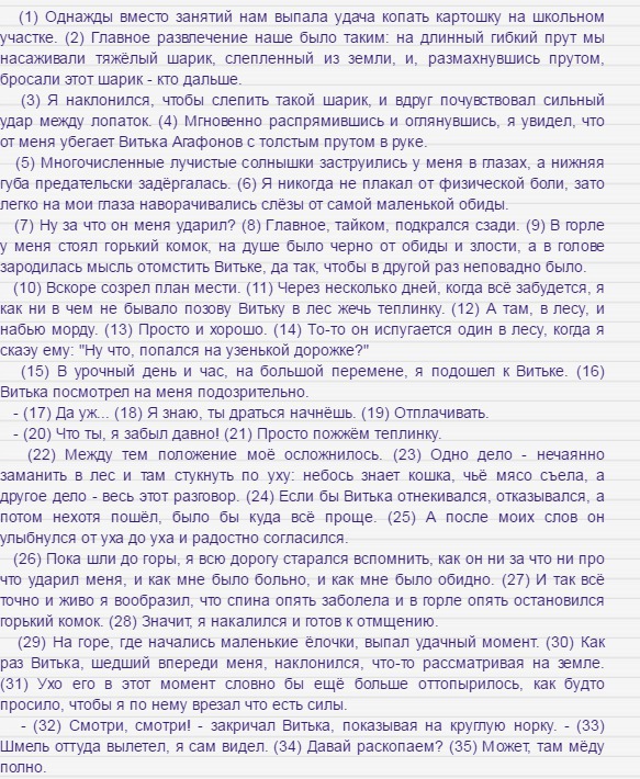 Приводя примеры, указывайте номера нужных предложений или применяйте цитирование.