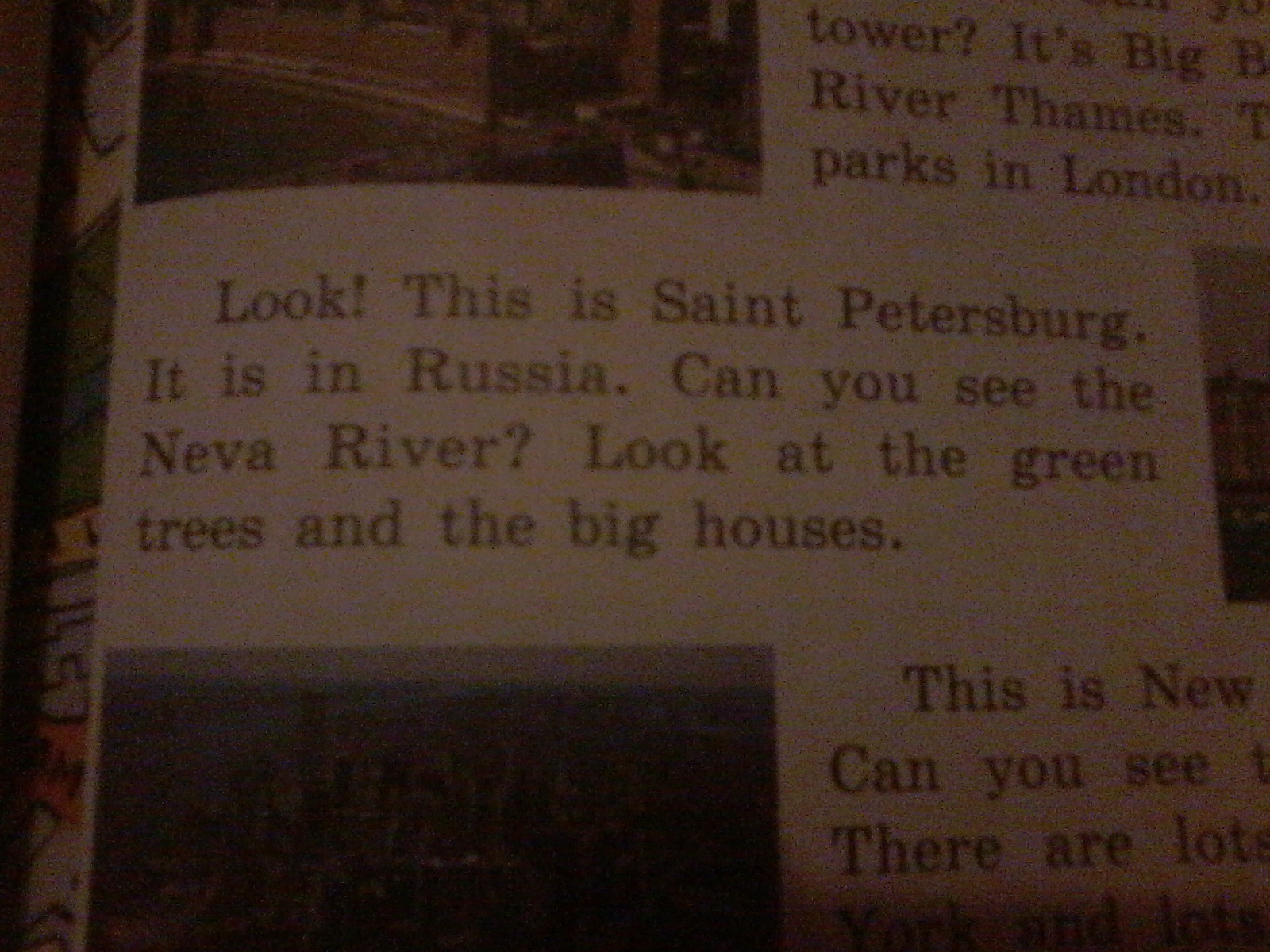Посмотри!Это Санкт-Петербург!Он находится в России.Ты видишь Неву (река).Посмотри на зеленые деревья и большие дома