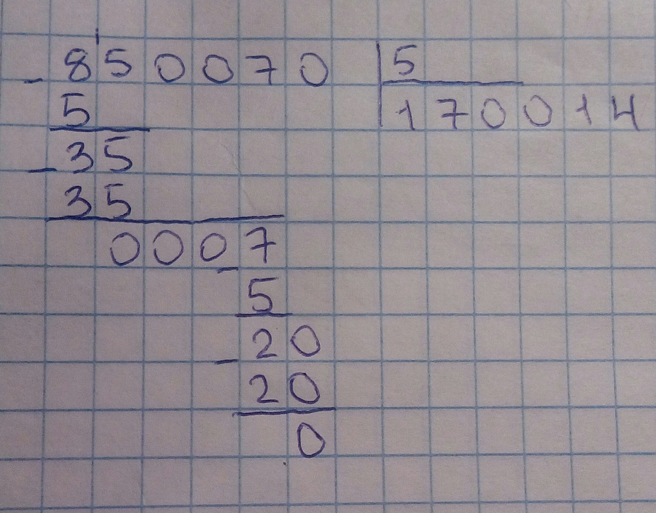 Помогите пожалуйста решить столбиком диление 850070÷5 (столбиком)