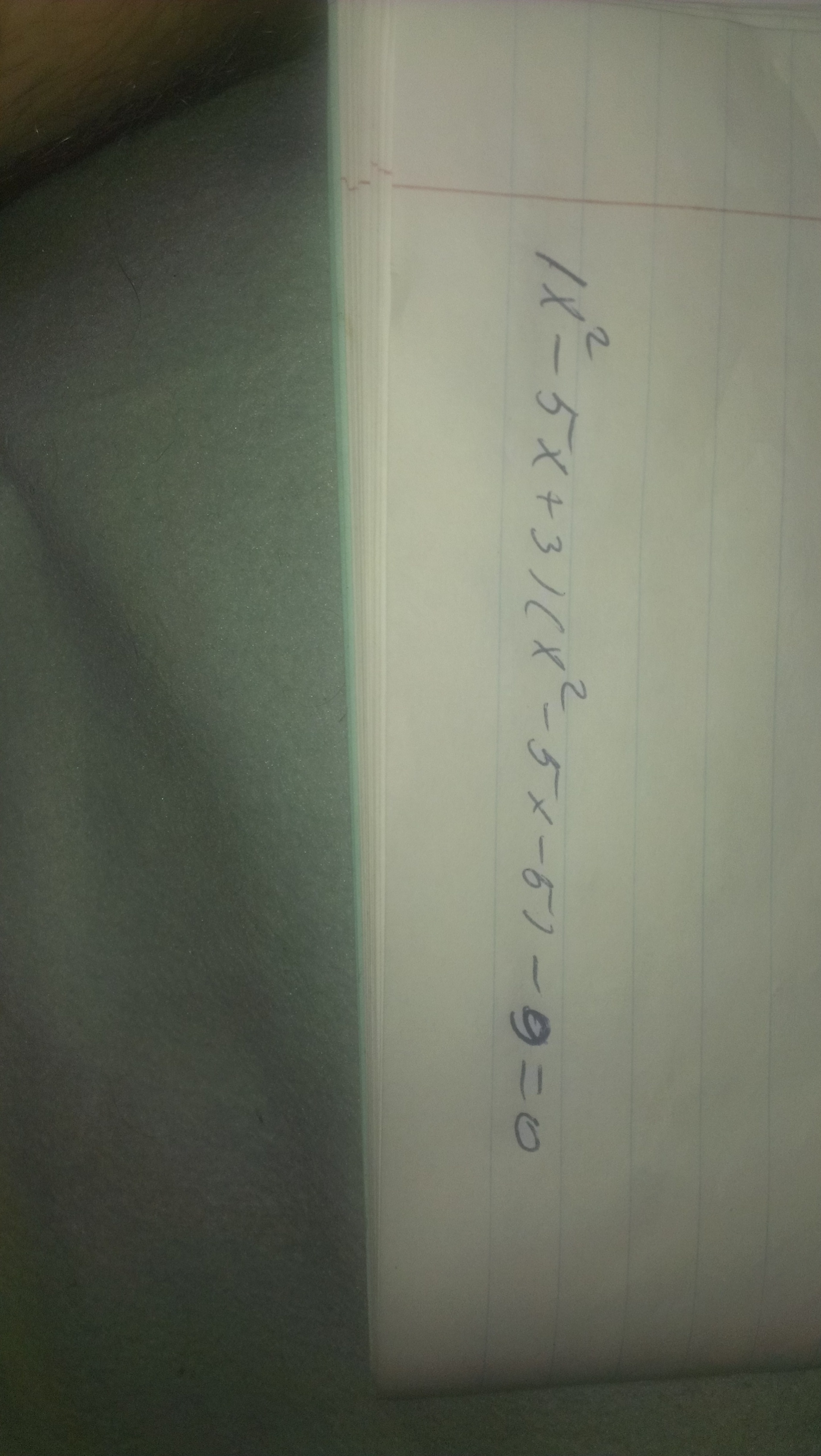 x^2-5x-5=t; t(t+8)-9=0; t^2+8t-9=0; t^2+8t=9; t(t+8)=9; t=9; t=1; x^2-5x-5=9; x^2-5x-14=0; x=7;x=-2; x^2-5x-5=1; x^2-5x-6=0 x=6;x=-1;