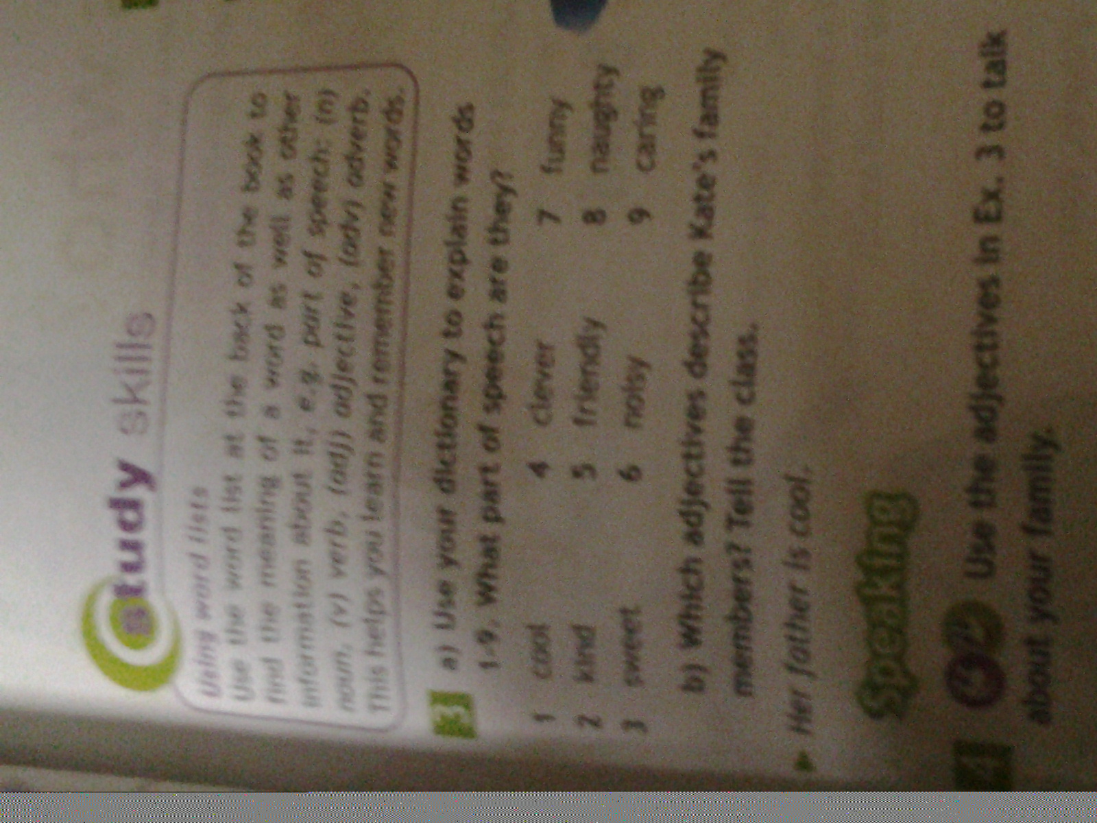 cool -прохладный,kind добрый,sweet сладкий, clever умный, friendly дружелюбный, noisy шумный, funny весёлый.