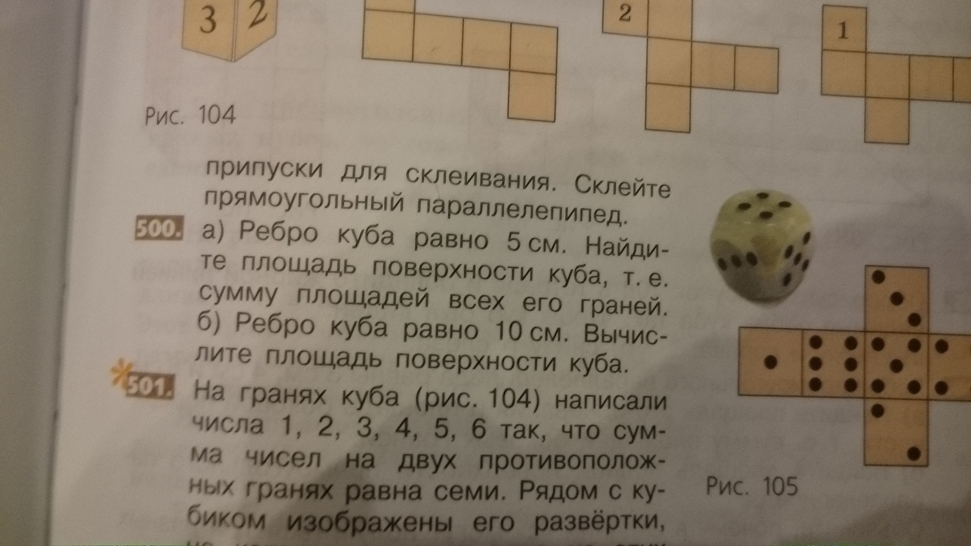 Ребро куба 5, площадь одной стороны 5*5=25,у куба их 6, следовательно площадь поверхности куба 25*6=150