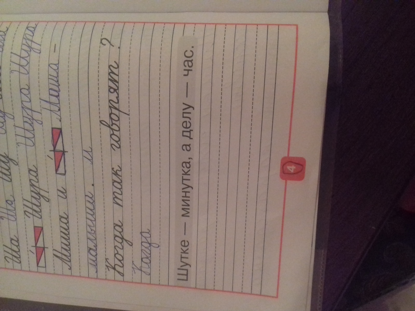 когда так говорят? шутке минутка, а делу час . что там нужно написать