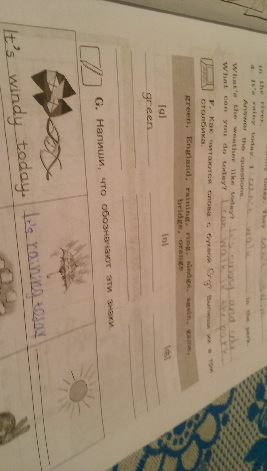 как читаются слова с буквой Gg? Выпиши их в три столбика. Green,England,raining,ring,sledge,again,game,bridge,orange. СРОЧНО!!! Плиз!!! :(