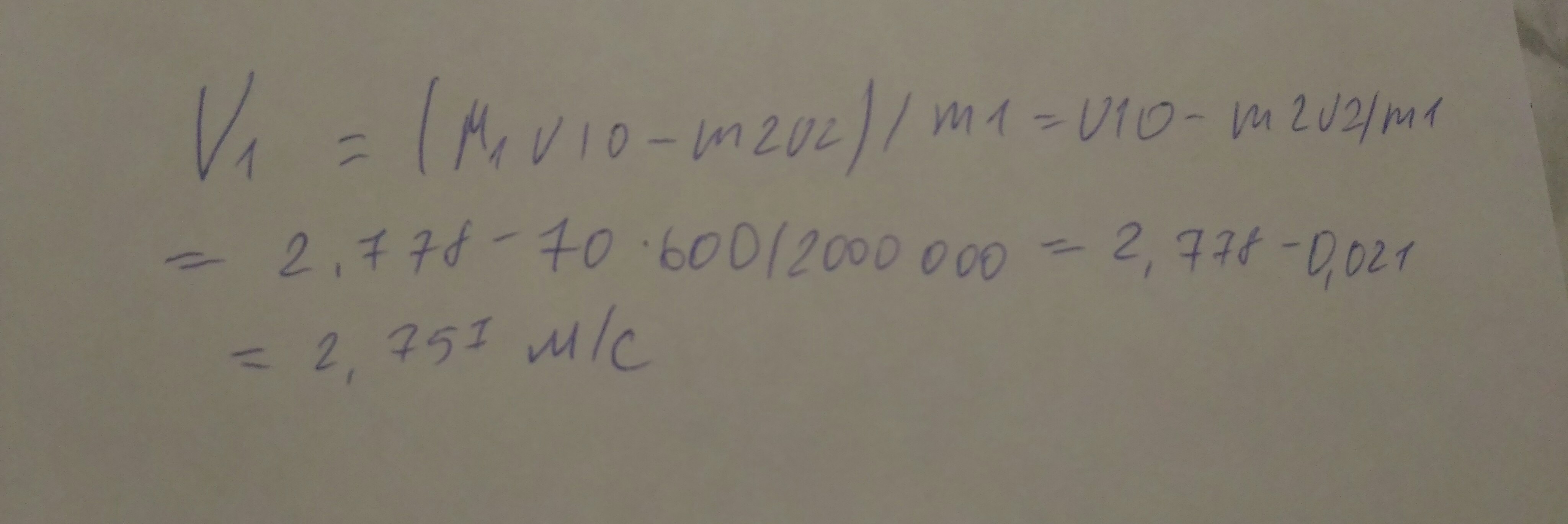С какой скоростью будет двигаться судно массой 2000т, плывущее со скоростью 10км/ч, если из закрепленного на нем орудия массой 1000кг вылетает снаряд массой 70кг со скоростью 600м/с против хода судна?