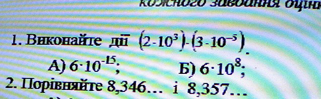 1) 6 * 10^-2(в минус второй степени) не знаю почему такого ответа нет. При множенні "показники" додаються