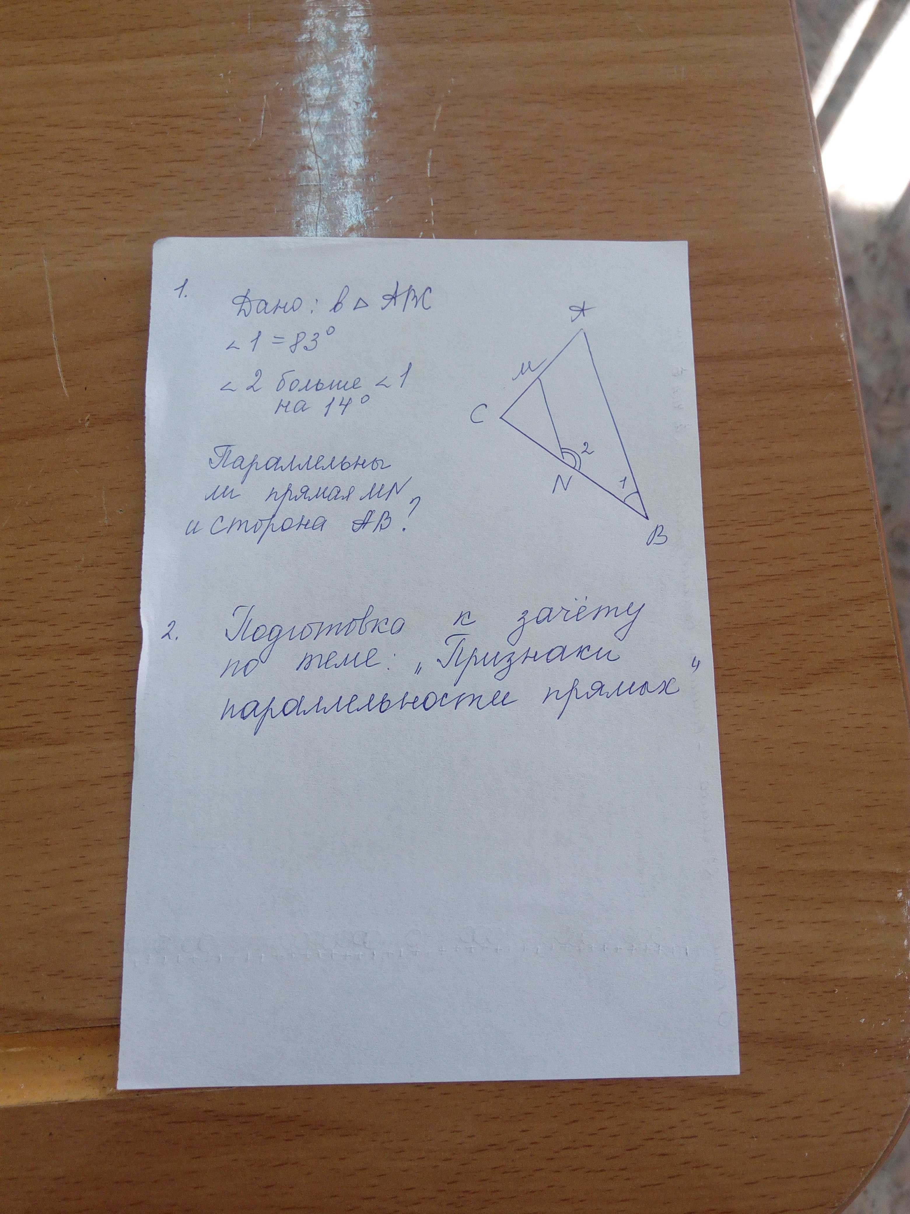 Углы 1 и 2 односторонние. Их сумма равна 83+97 = 180 градусов. Следовательно AB и MN параллельны.