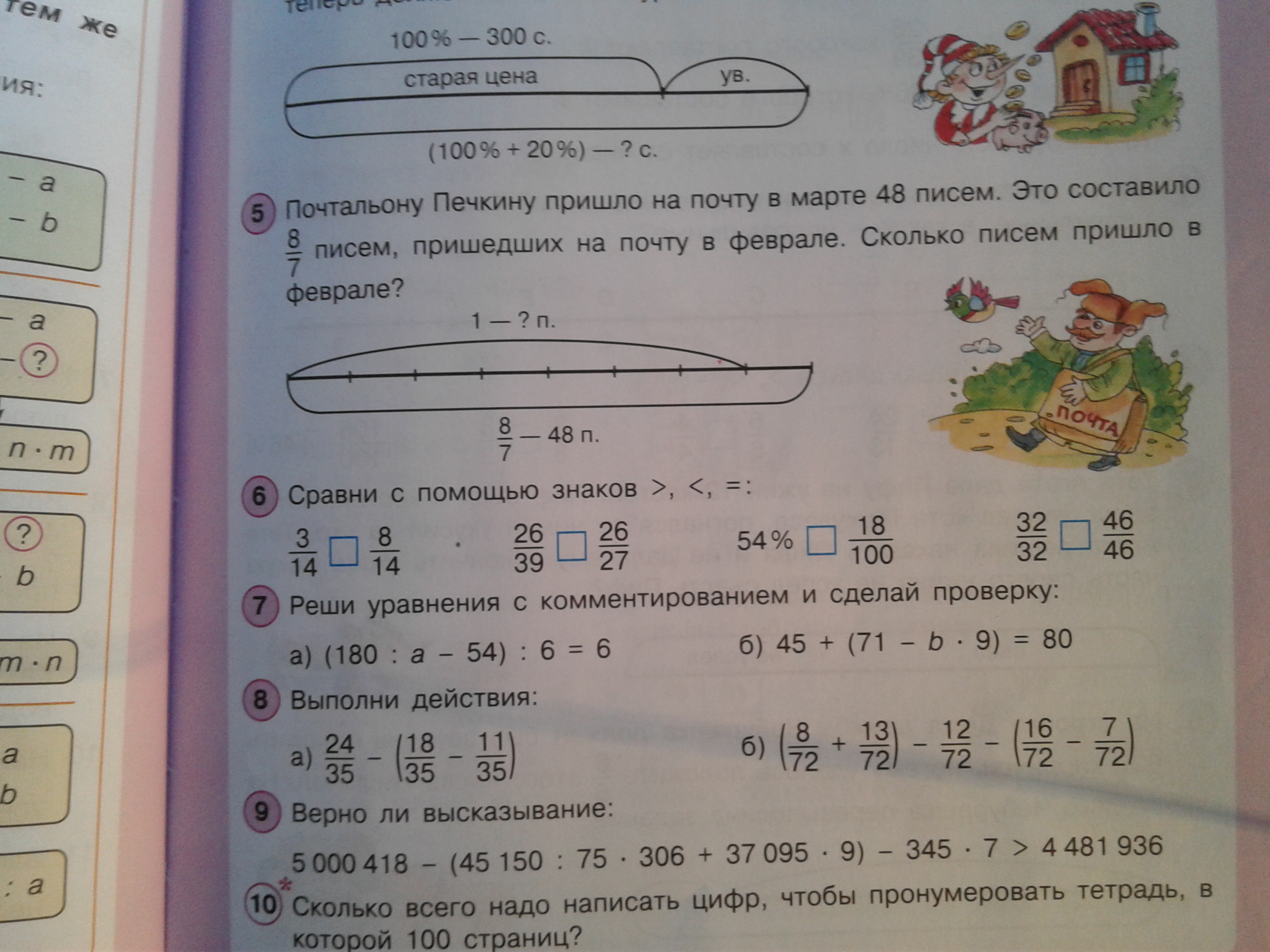 5.Если письма в марте это 8/7, то 1/7 равна 6. Следовательно 7/7 равно 42