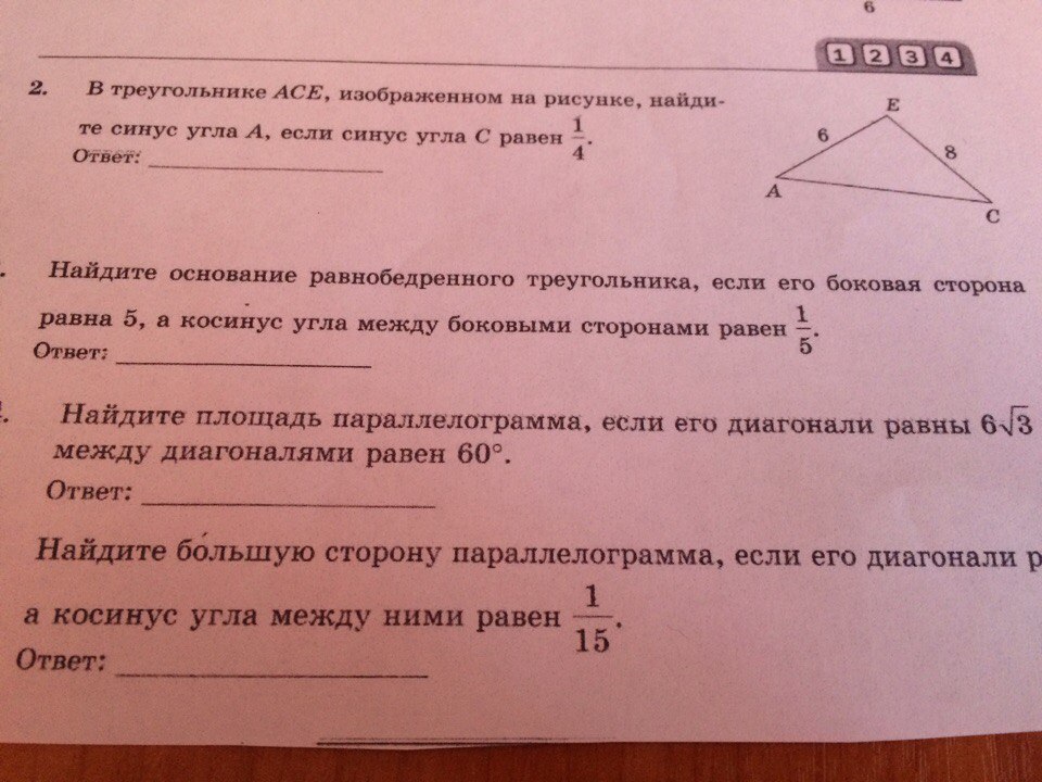 В треугольнике АСE,изображенном на рисунке найдите синус угла А ,если синус угла С равен 1/4