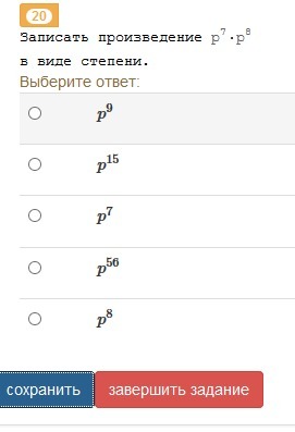 р^15.Ответ : 2. Потому что степени при умножении складываем.