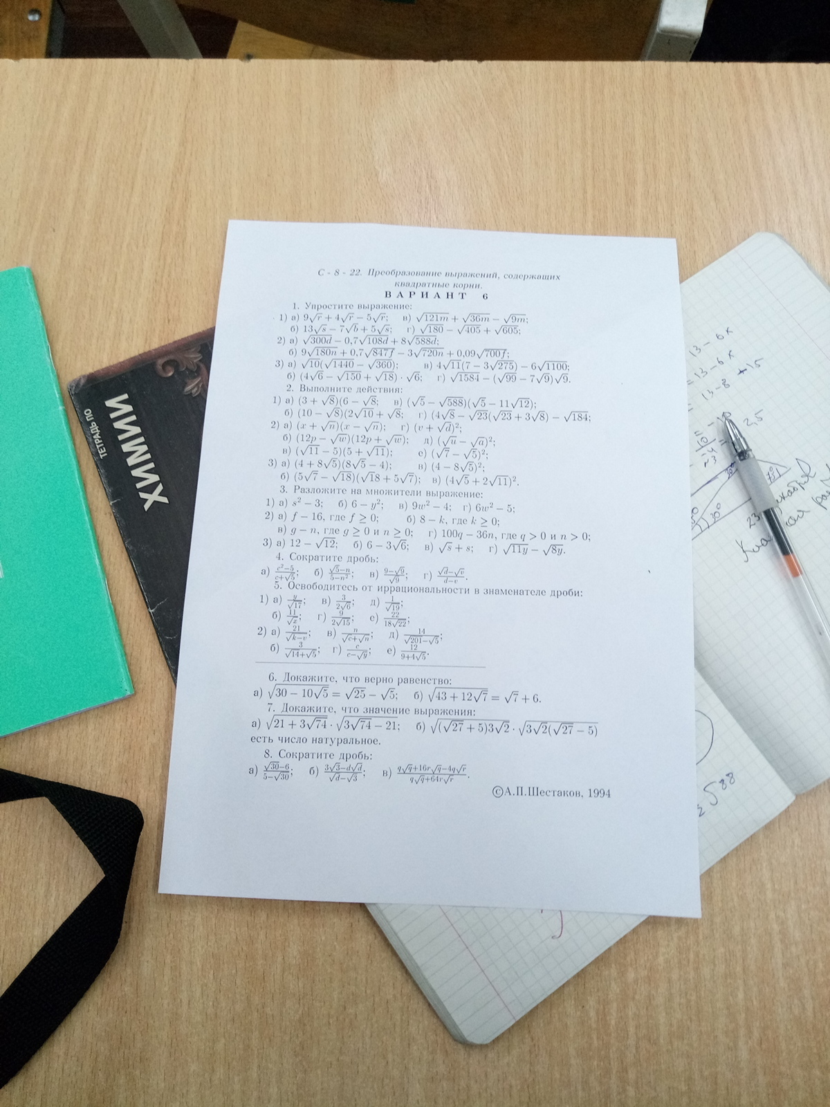 преобразование выражений содержащих квадратные корни вариант 6 .номер 1,2,5