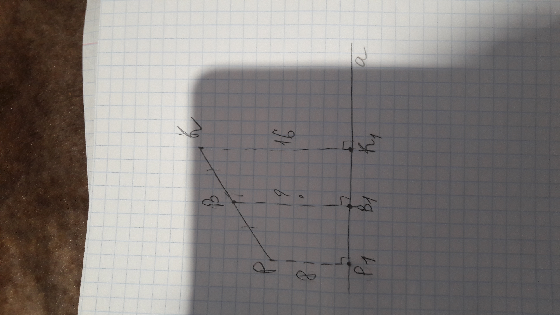 6-Отрезок PK не пересекает прямую A.Из его концов и середины B проведены перпендикуляры PP1;KK1 и BB, к прямой A . Найдите BB1 если PP1=8; KK1=16
