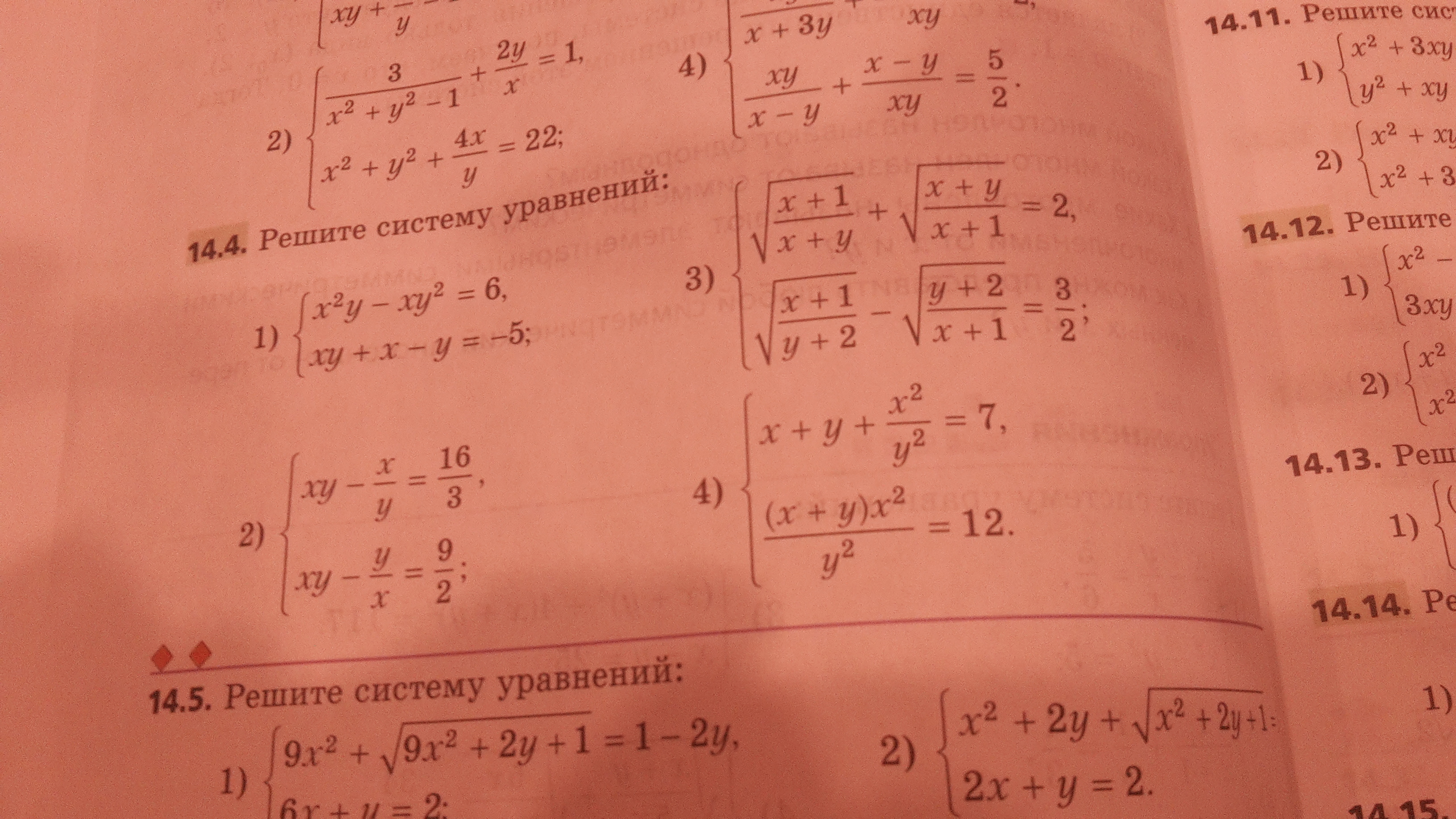Помогите пожалуйста! Номер 14.4 Срочно нужно решить 2,3,4 систему уравнений. Ответы: 2) (2;3) (-2;-3)