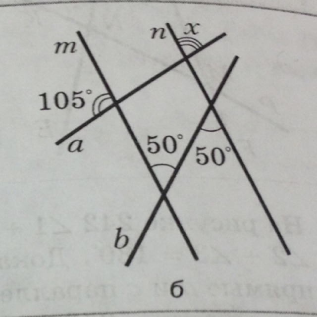 На рисунке два угла, образованные пересечением двух прямых m и n секущей b, равны как накрест лежащие => n || m.