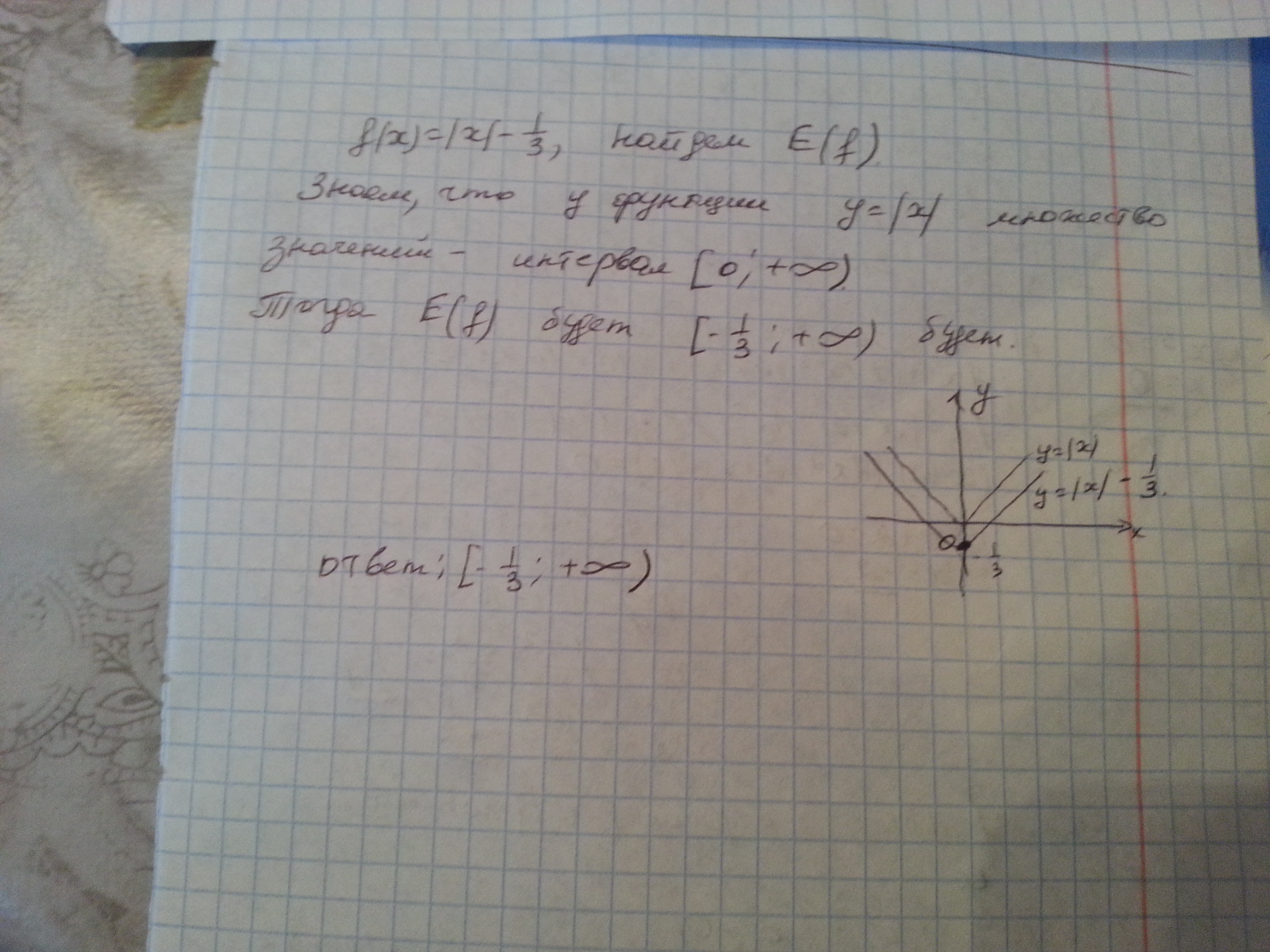 Помогите, пожалуйста, найти множество значений функции f(x)= |x|-1/3