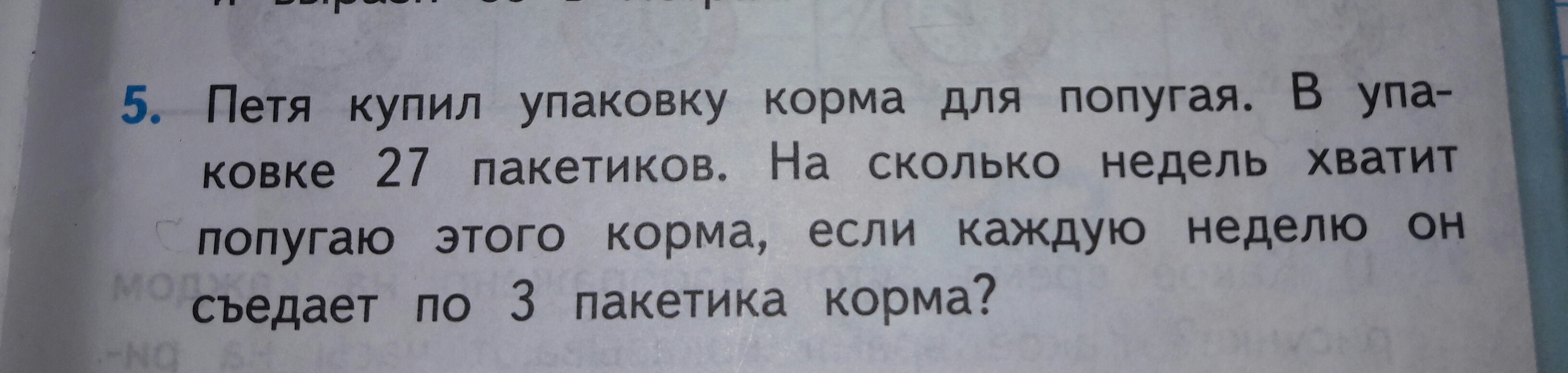 27:3=9(нед.)- попугай будит есть 27 пакетиков.