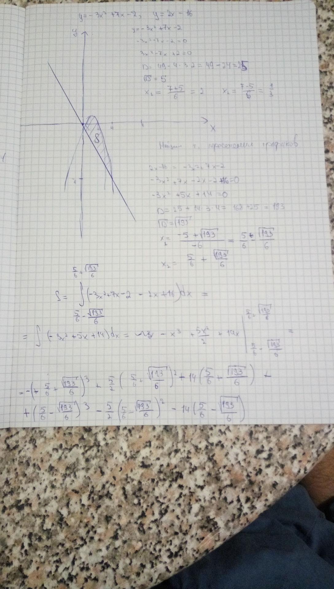 y=-3x^2+7x-2, y=2x-16