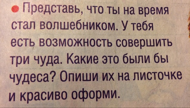 Помогите, пожалуйста, выполнить задание) напишите, какие бы вы чуда совершили.