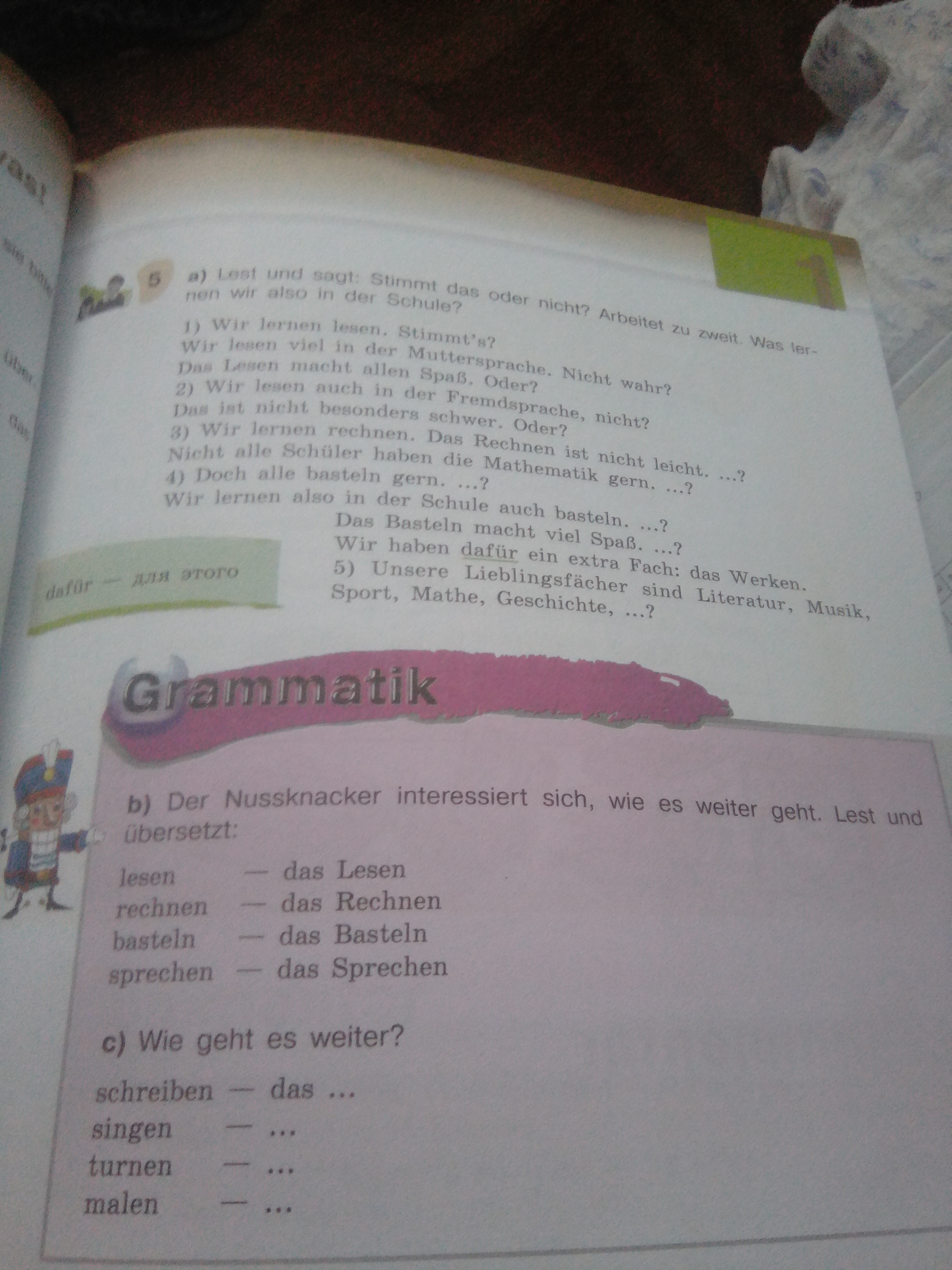 Wir lernen also in der Schule auch basteln. Nicht wahr?