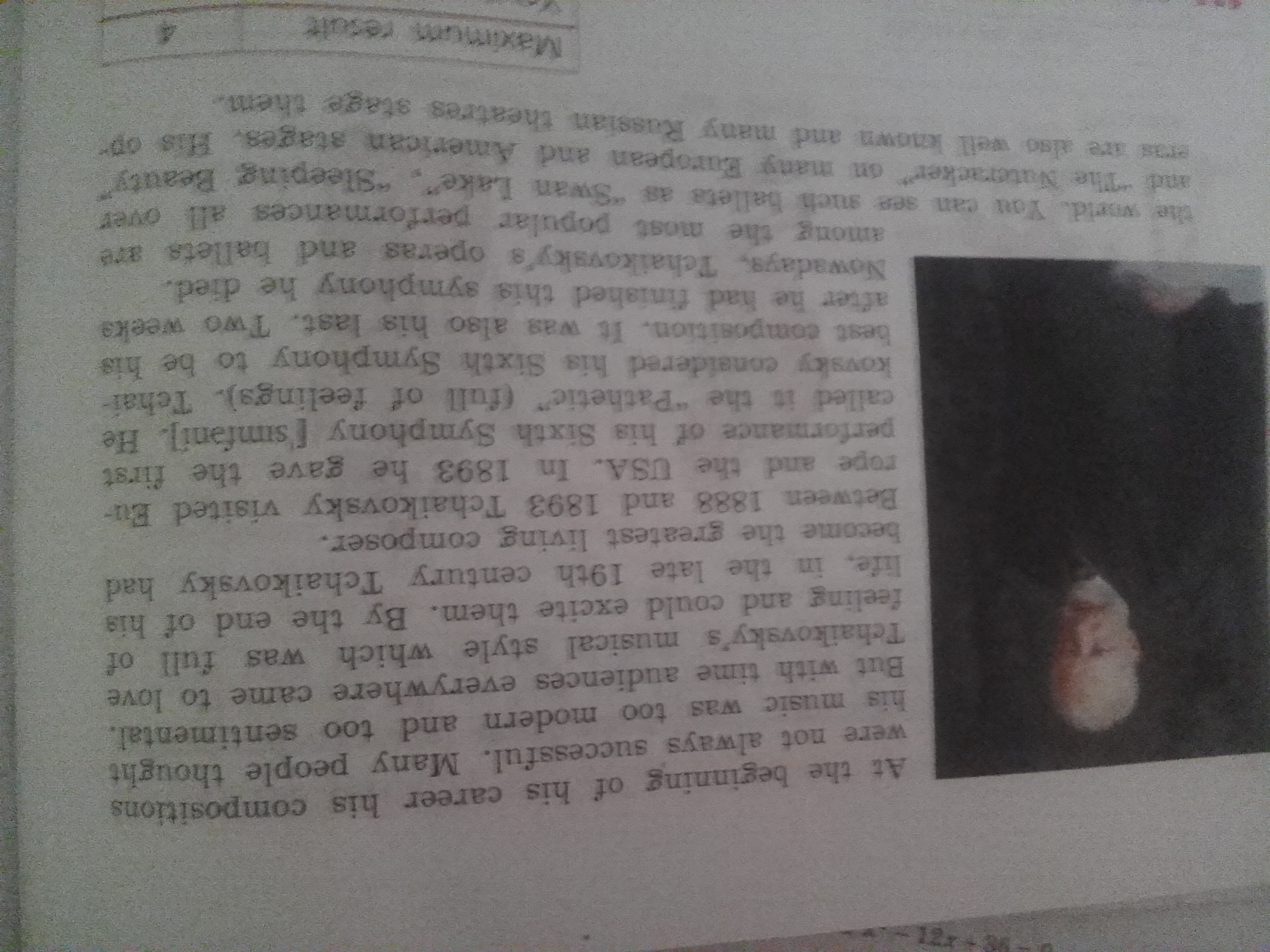 Между 1888 и 1893 Чайковский посетил Европу и США. В 1893 он впервые исполнил его шестую симфонию. Он назвал её "Патетическая" (полная чувств). Шестая симфония Чайсковского считается его лучшим произведением. И также оно было последним. Через две недели после того, как он закончил симфонию, он умер.