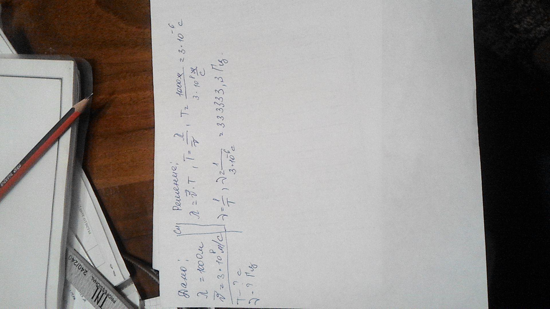 генератор излучает электромагнитную волну длиной 1000 м. Определите период и частоту электромагнитныъ колебаний. Скорость электромагнитных волн принять равной 3*10^8 м/c