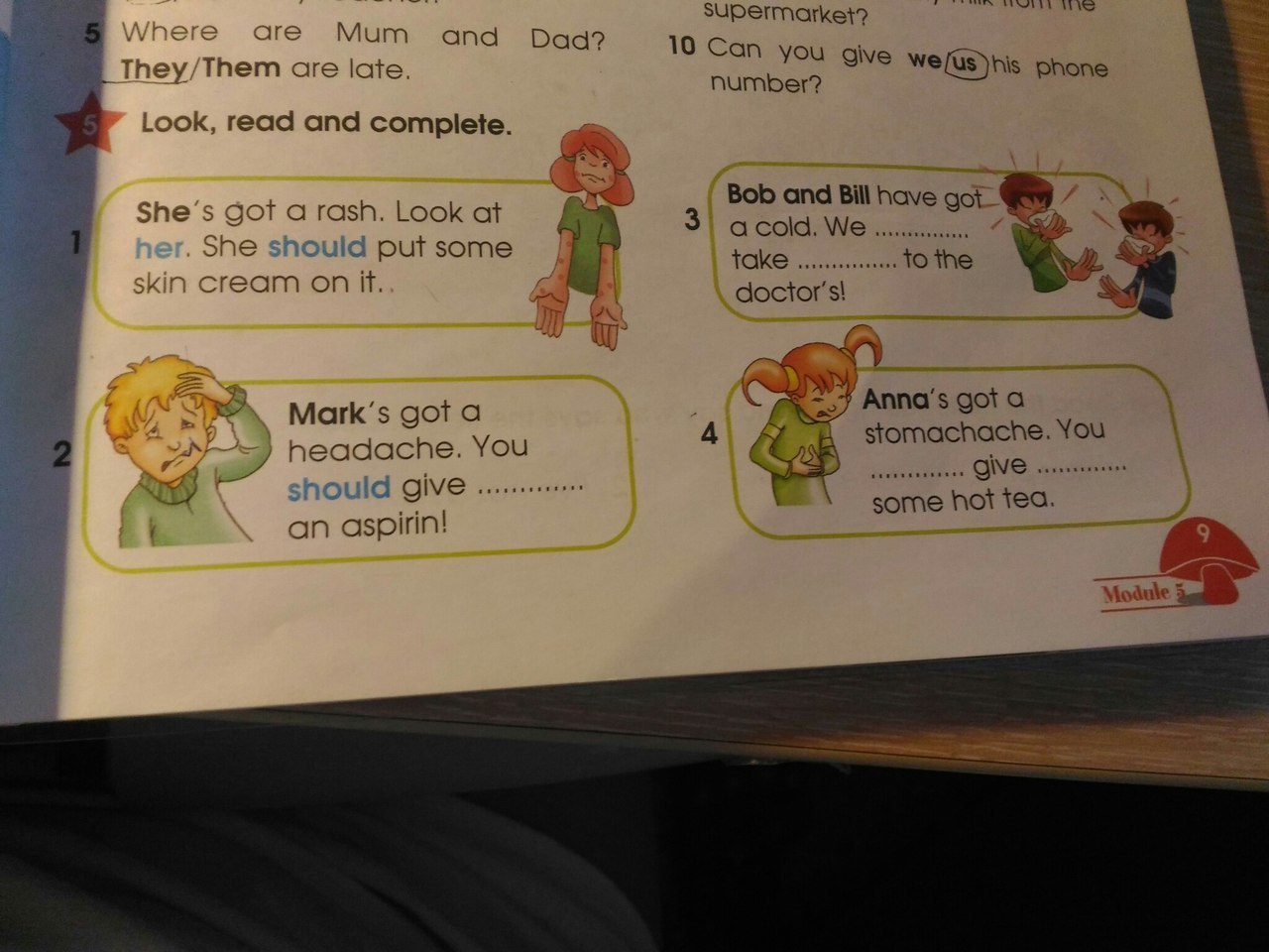 Bob and Bill have got a cold.W e should take they to the doctor's
