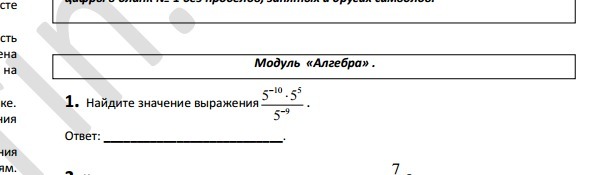 5^-5:5^-9=5^-5-(-9)=5^4=625