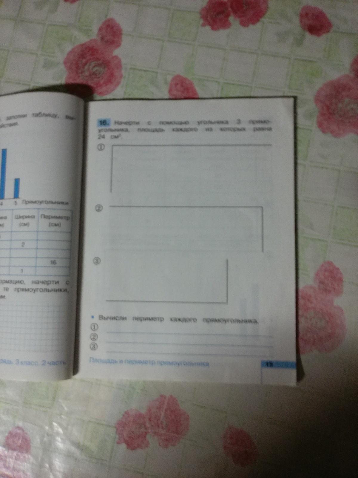 Начерти с помощью угольника 3 прямоугольника,площадь каждого из которых равна 24 см.кв