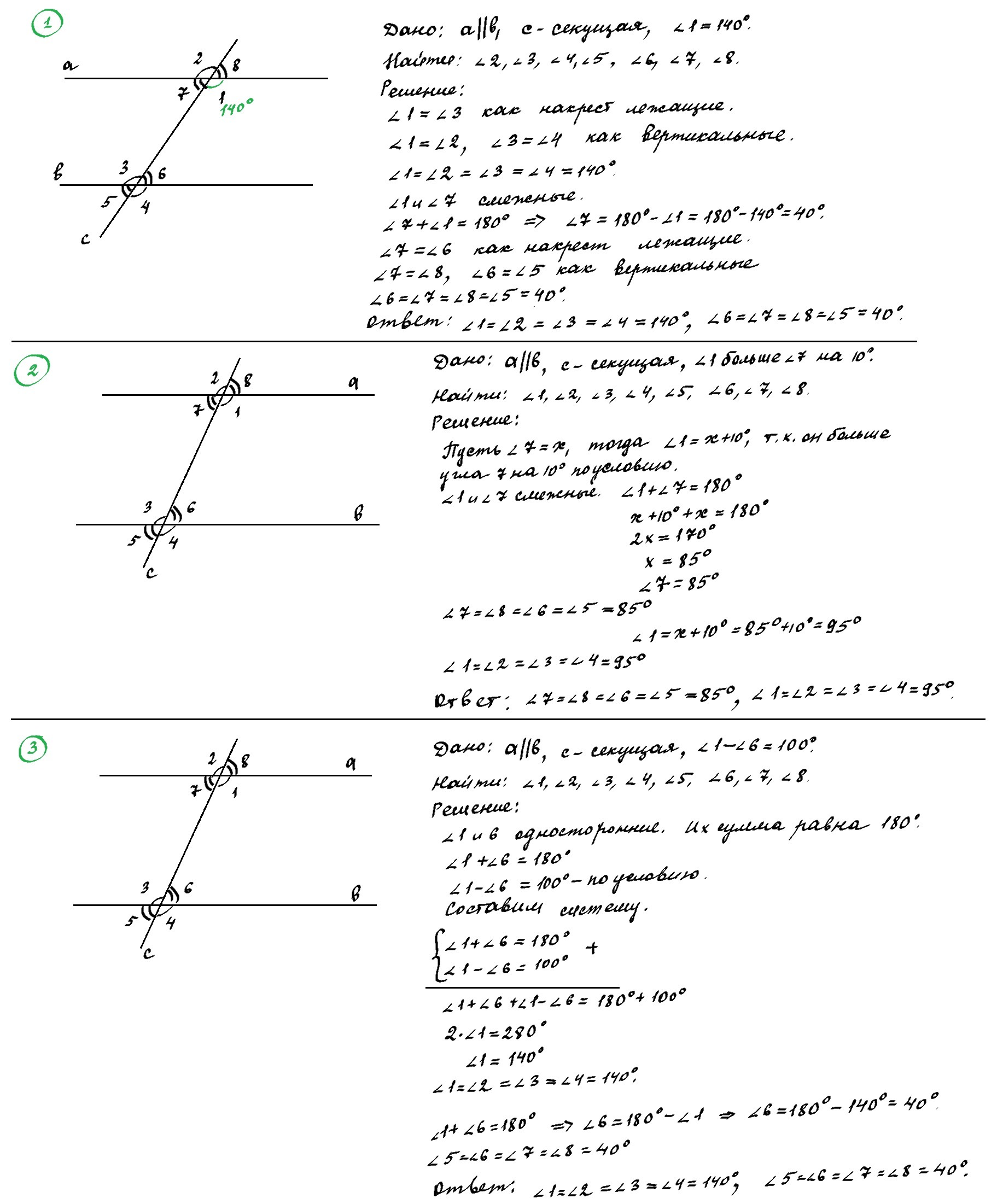 Найдите все углы, образовавшиеся при пересечении двух параллельных