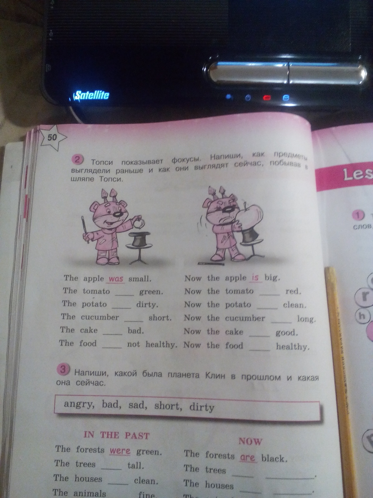 Топси показывает фокусы. напиши как предметы выглядели раньше и как они выглядят сейчас,побывав в шляпе Топси?