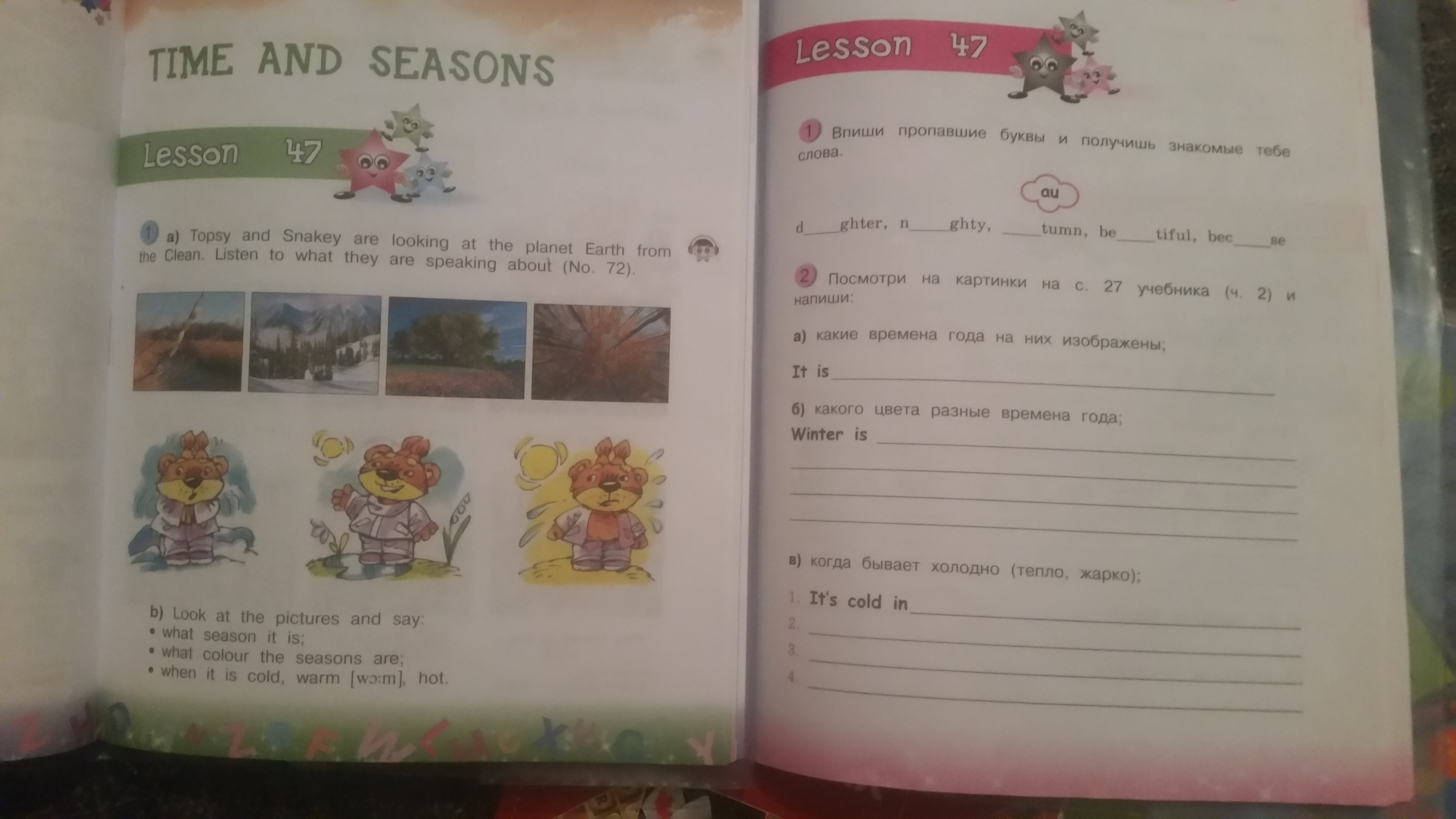 2. а) It's spring. It's winter. It's summer. It's autumn.