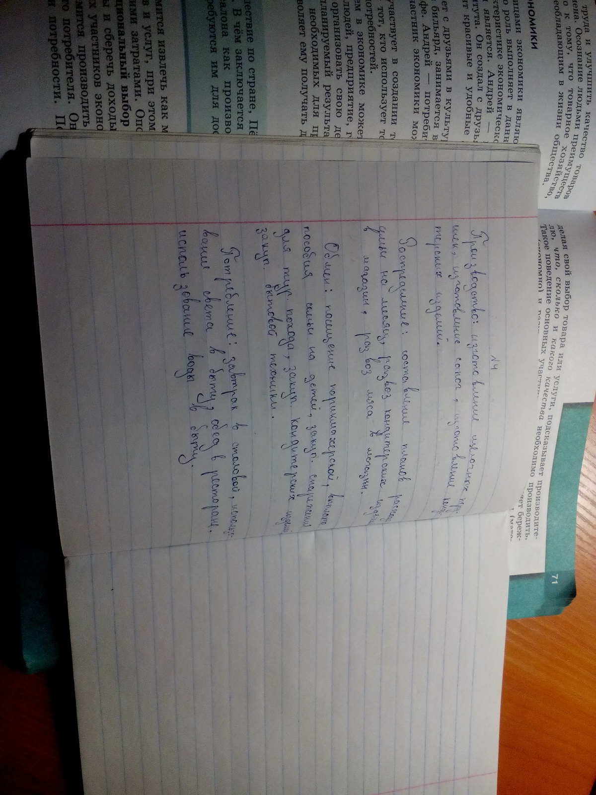 Основные стадии движения продукта:Производство,распределение,обмен,потреблениеВпишите каждый из перечисленных видов экономической деятельности в соответствующий столбик таблицы:изготовление елочных игрушек,составление плана расходов семьи на месяц,завтрак в школьной столовой,посещение парикмахерской,выплата пособия семьи на детей,использование освещение в быту,закупка снаряжения для туристического похода.Приведи по 2-3 собственных примера в каждой столбик.
