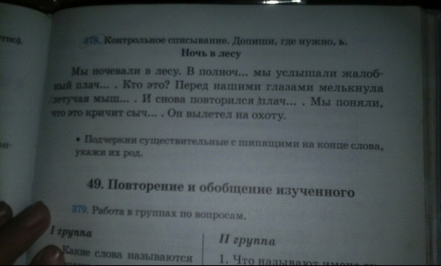 Мы ночевали в лесу в полночь, мы услышали жалобный плач. Кто это? Перед нашими глазами мелькнула летучая мышь. И снова повторился плач. Мы поняли что это кричит сыч. Он вылетел на охоту.