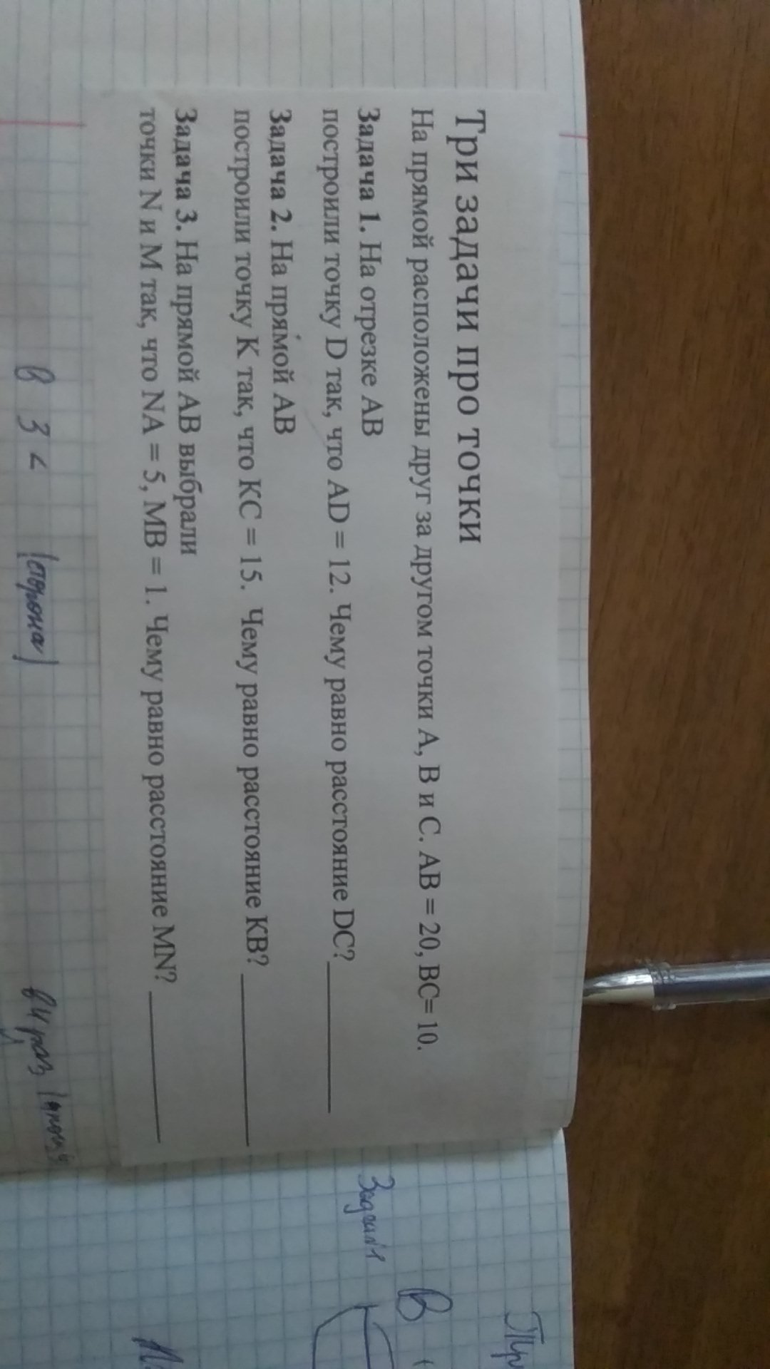 если за B, то MN = AB + AN + BM = 20 + 5 + 1 = 26