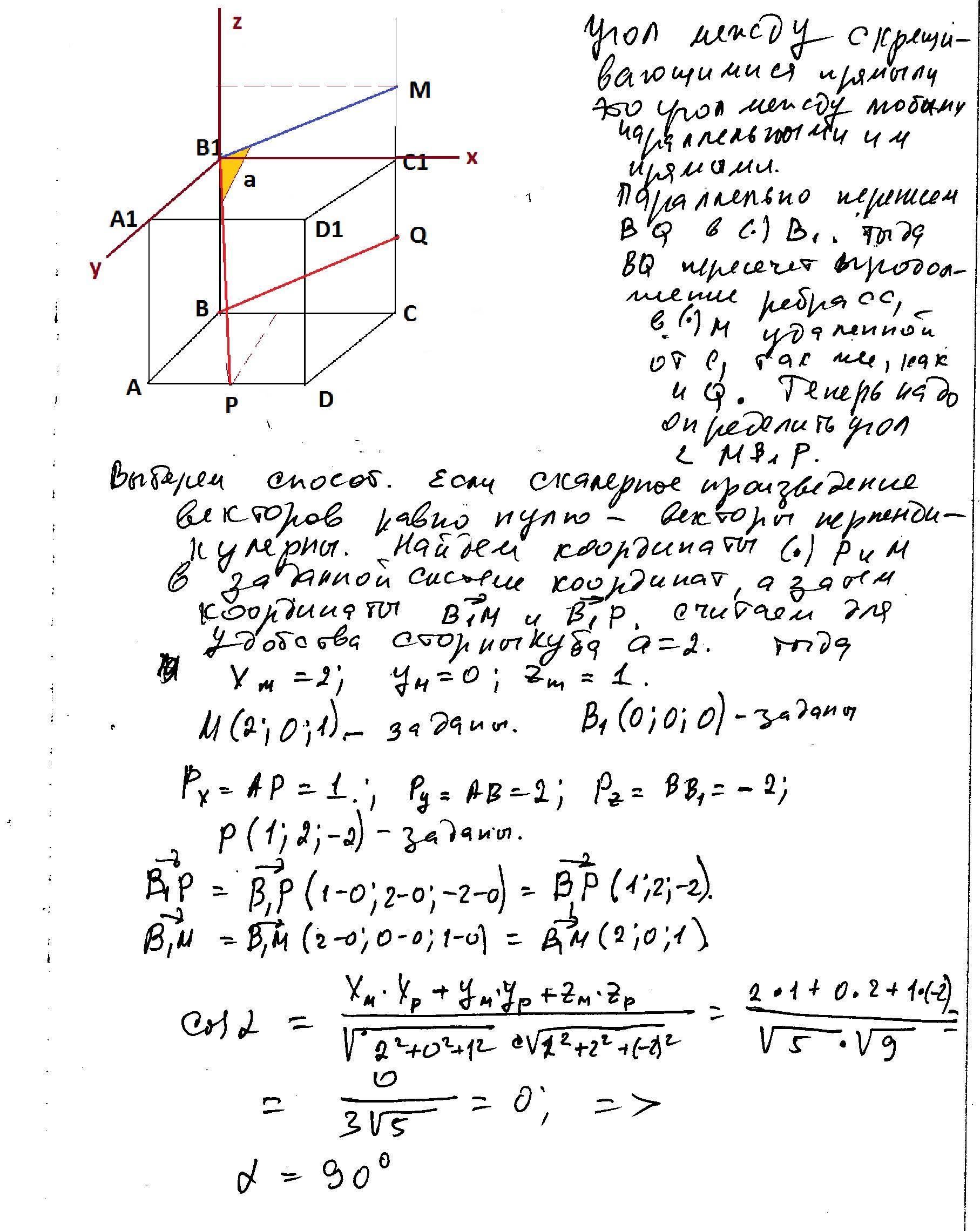 Точки P и Q — середины рёбер AD и CC1 куба ABCDA1B1C1D1