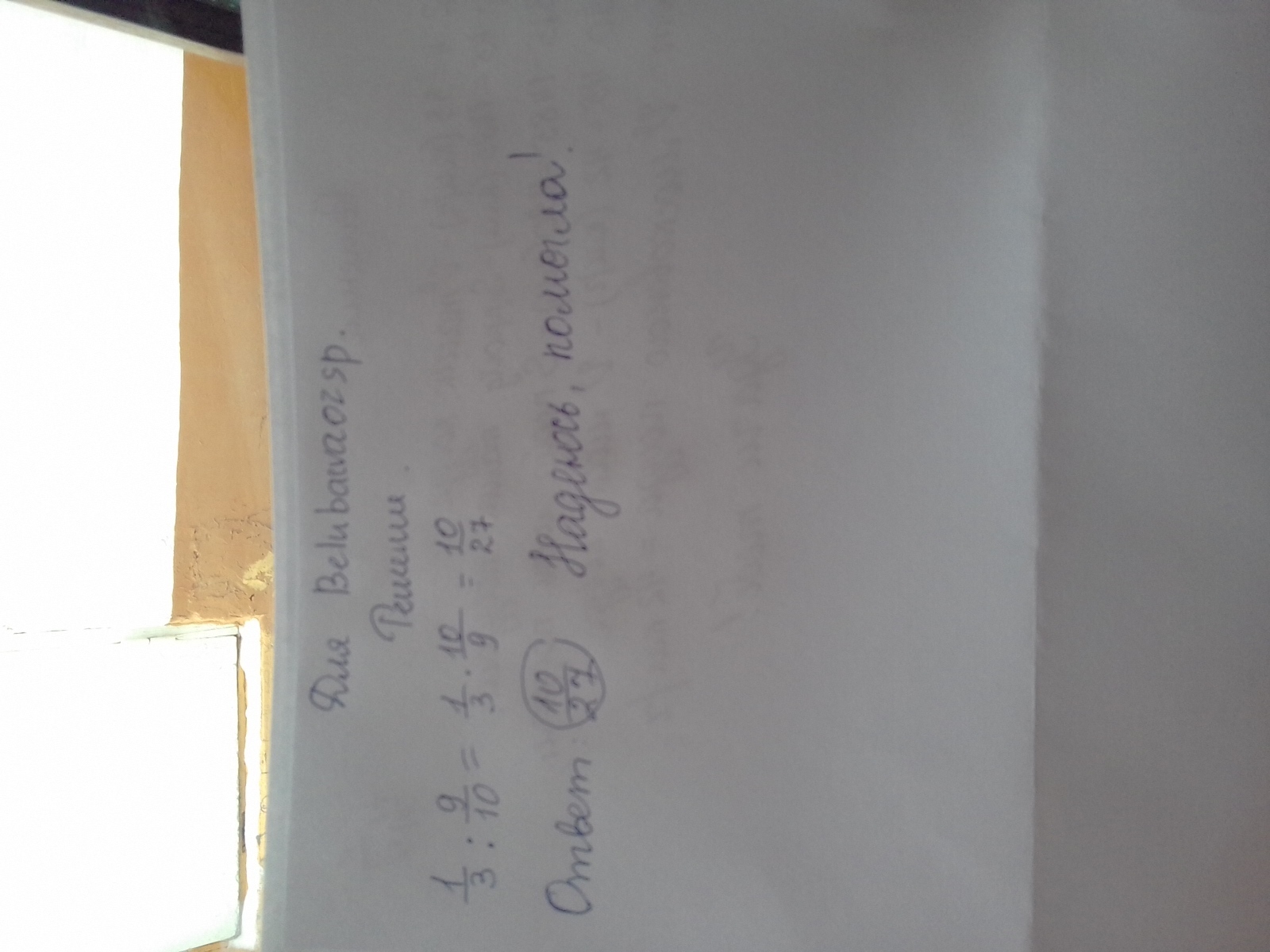 помогите решить 1/3 делить на 9/10