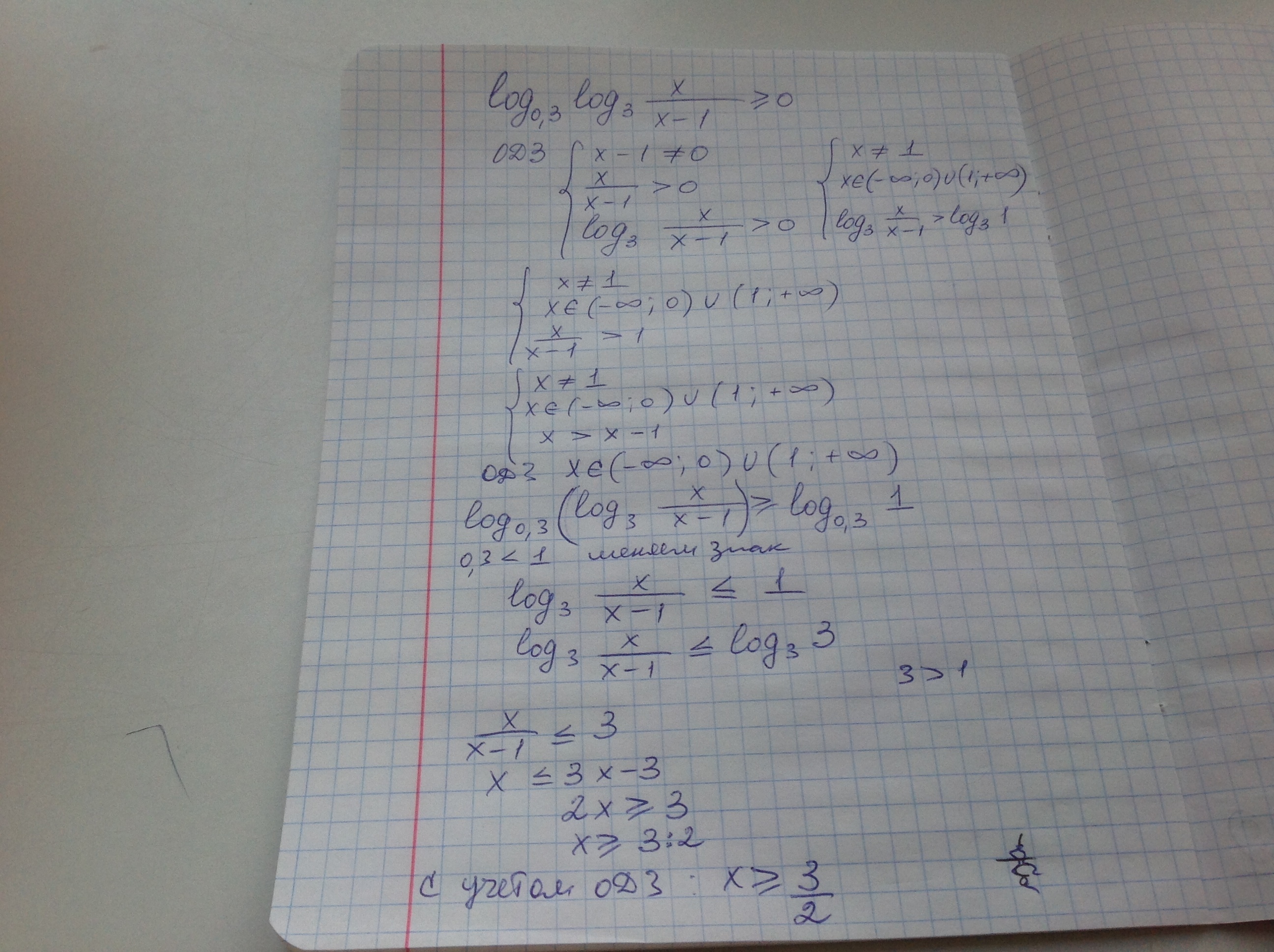 0.3 < 1 значит , при переходе меняем знак неравенства