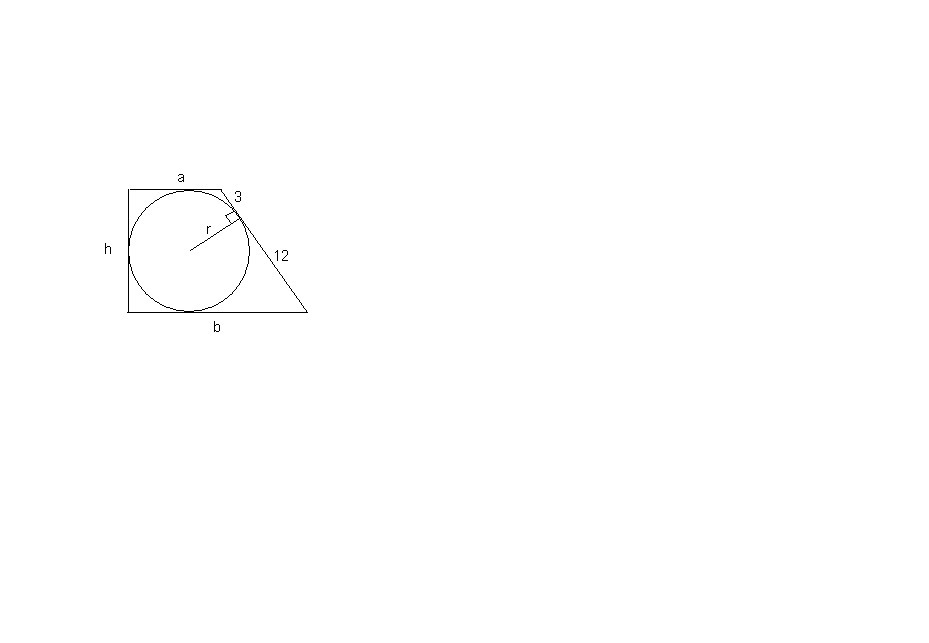 В прямоугольную трапецию вписана окружность. Точка касания делит большую боковую сторону на отрезки длинной 3 см и 12 см. найдите радиус вписанной окрудности ,если периметр трапеции равен 54 см